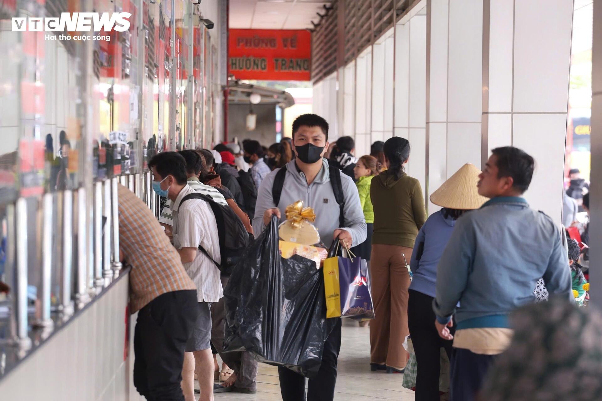 Tại khu vực quầy vé của hãng Phương Trang, hành khách đứng chật kín. Anh Trần Tuấn Khải (quê Cần Thơ) cho hay 26 tháng Chạp là ngày làm việc cuối cùng của năm nên anh xin công ty về sớm hơn giờ tan ca để kịp chuyến xe về quê sum họp gia đình.