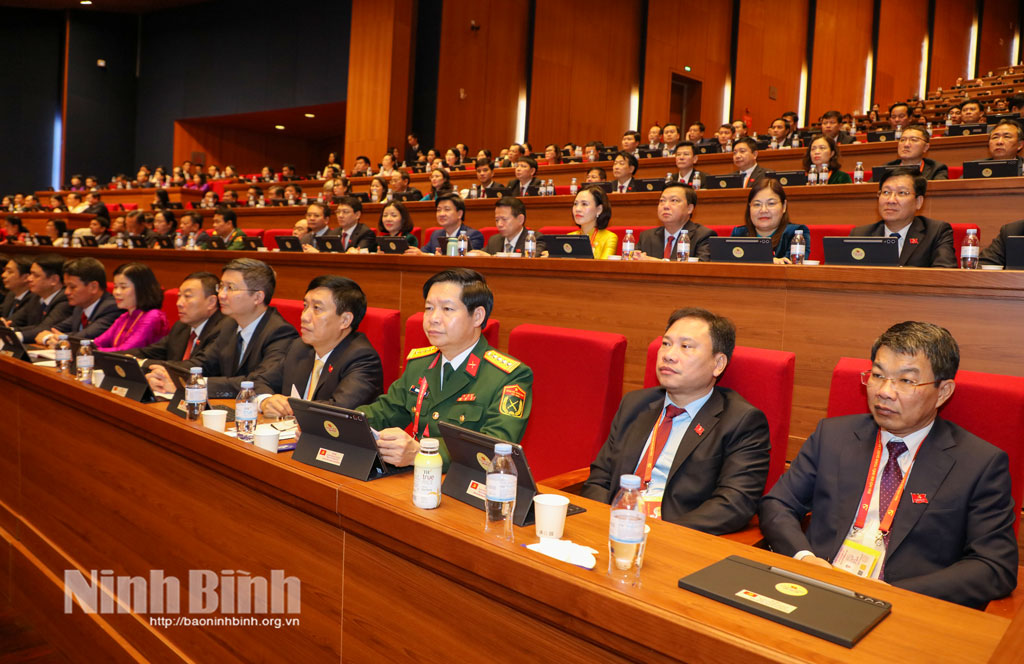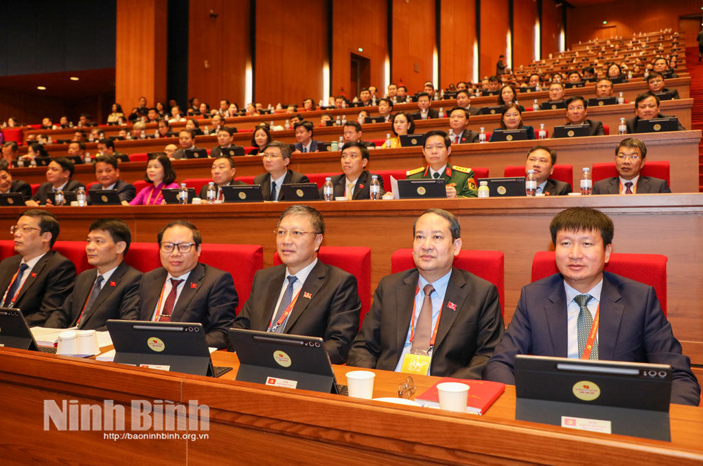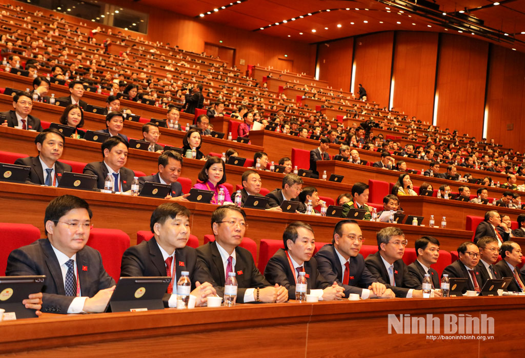 Đoàn đại biểu Đảng bộ tỉnh Ninh Bình tham dự phiên thảo luận có các đồng chí: Đặng Xuân Phong, Ủy viên Trung ương Đảng, Bí thư Tỉnh ủy, Trưởng Đoàn ĐBQH tỉnh, Trưởng đoàn Đoàn đại biểu Đảng bộ tỉnh Ninh Bình; Đinh Thị Lụa, Phó Bí thư Thường trực Tỉnh ủy; Lê Quốc Chỉnh, Phó Bí thư Tỉnh ủy, Chủ tịch HĐND tỉnh; Trần Huy Tuấn, Phó Bí thư Tỉnh ủy, Chủ tịch UBND tỉnh; Mai Văn Tuất, Phó Bí thư Tỉnh ủy, Chủ tịch Ủy ban MTTQ Việt Nam tỉnh…