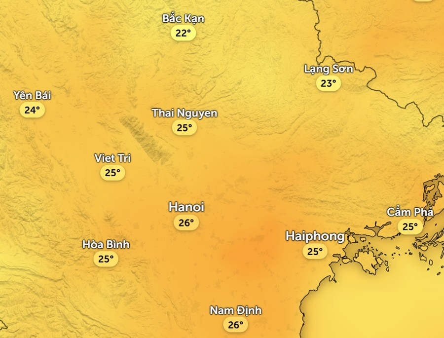 Trong những ngày còn lại của tháng 2, nhiệt độ ở Hà Nội vẫn cao. Hôm nay, 22/2, nhiệt độ cảm nhận ở Hà Nội vào buổi trưa và chiều là khoảng 25oC, thấp hơn một chút so với cùng thời điểm hôm qua, nhưng là do trời nhiều mây hơn chứ gió vẫn chủ yếu là Đông Nam. Trời trở nên ẩm hơn.