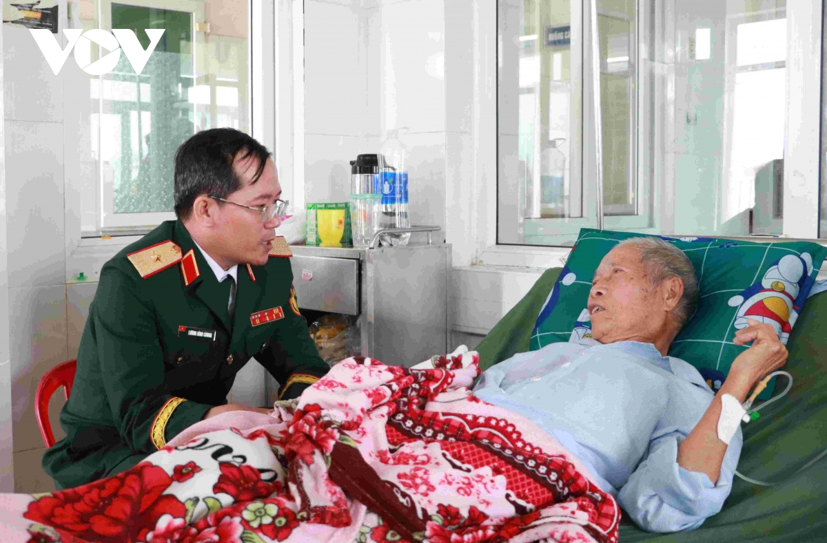 Thiếu tướng Lương Đình Chung thăm hỏi bệnh tình của bệnh nhân