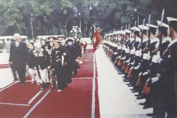Chủ tịch nước Lê Đức Anh cùng các Bà mẹ Việt Nam anh hùng duyệt Đội Danh dự trong khuôn viên Phủ Chủ tịch tháng 12/1994. Ảnh tư liệu.