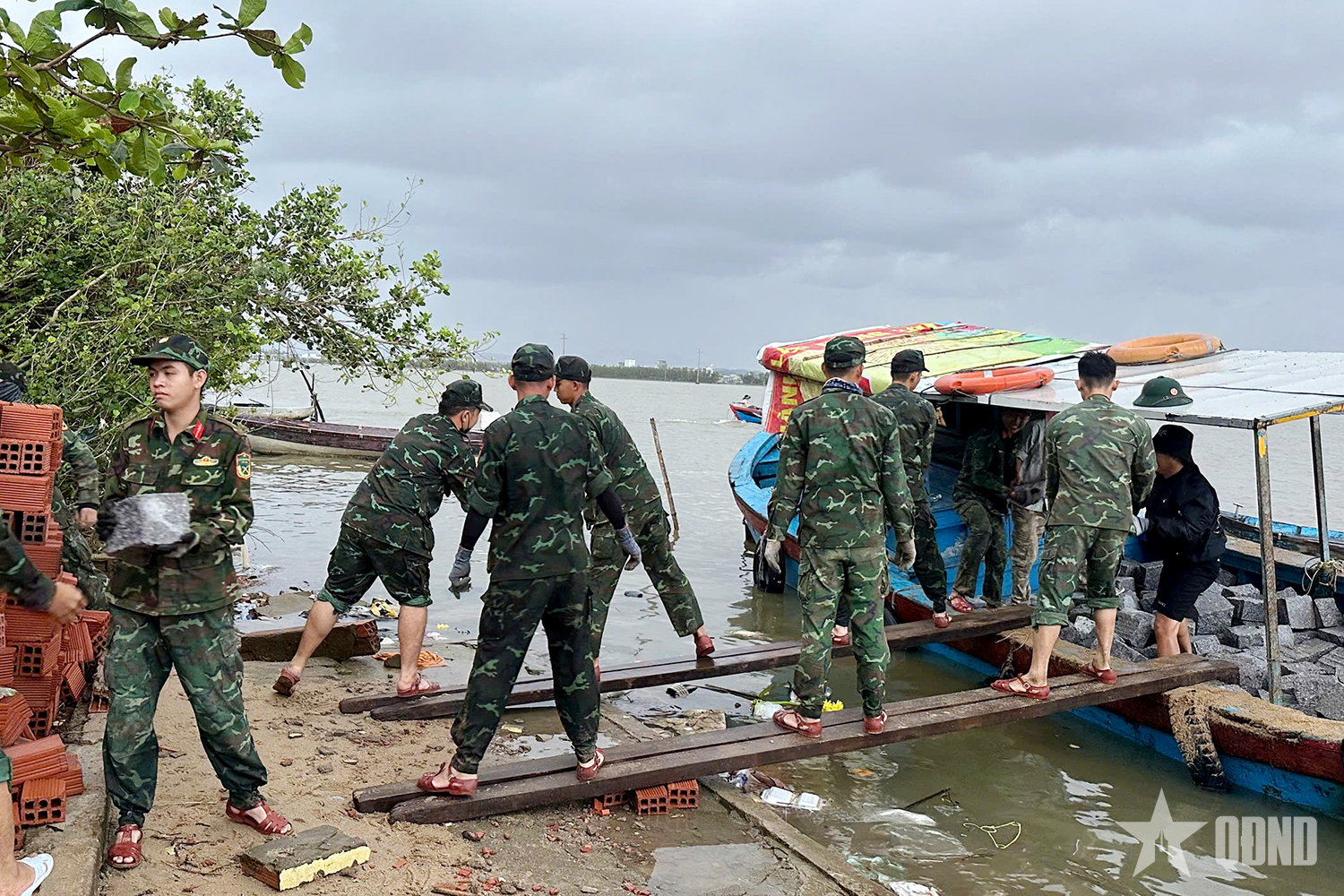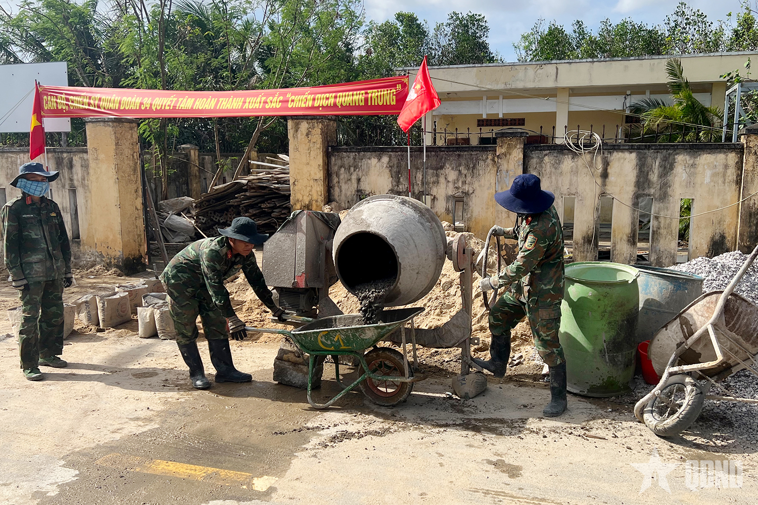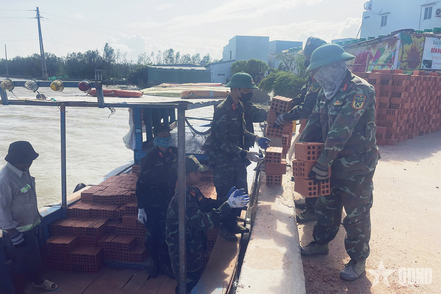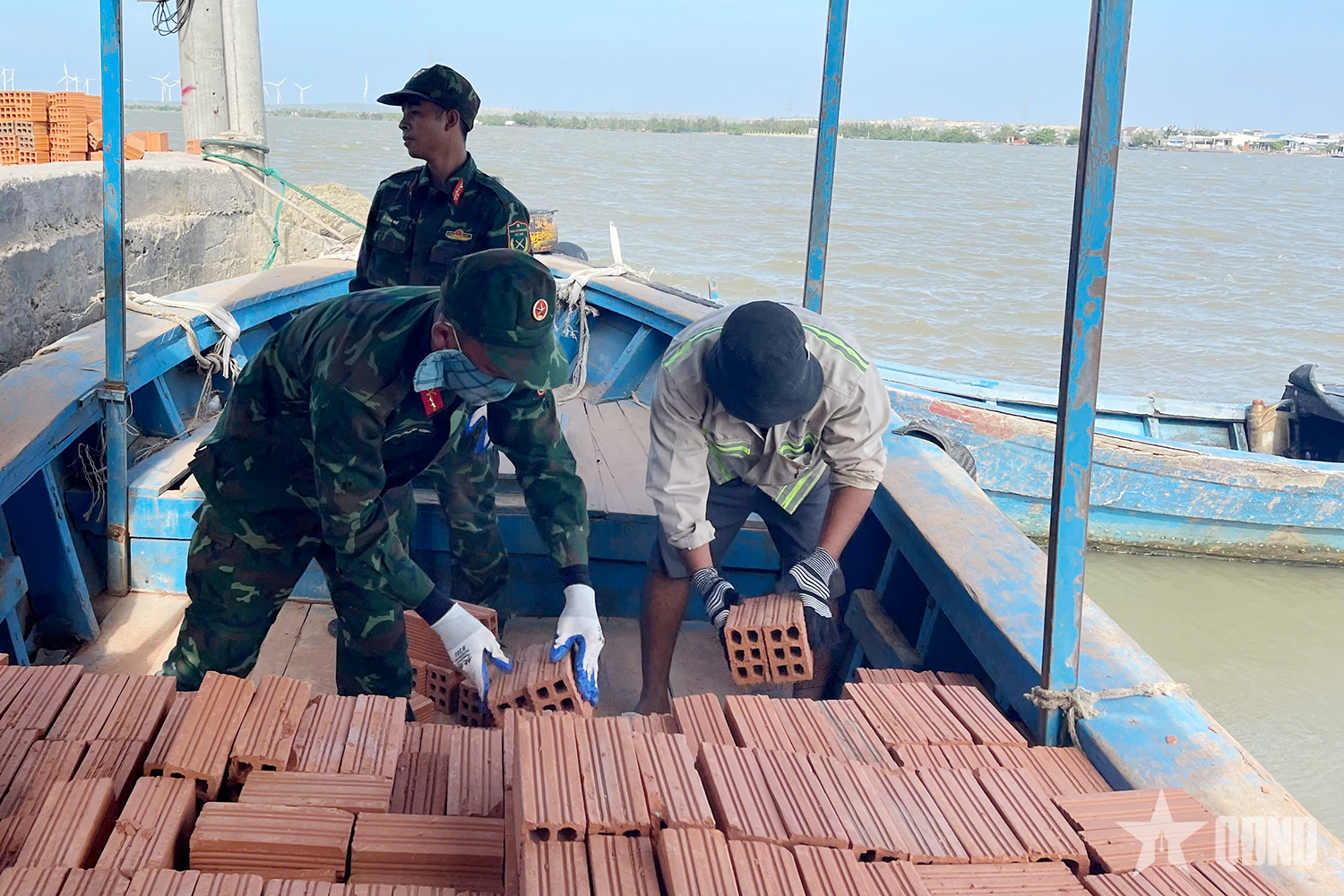 Bộ đội cùng người dân phải dùng thuyền ghe, ca nô vận chuyển vật liệu từ nơi tập kết, chất đầy đá hộc, cát, xi măng, sắt thép, gạch ống cập bến. Tiếp đó, những đôi tay bộ đội lại thoăn thoắt xếp dỡ lên các xe rùa chở đến các công trình. Dù phải làm việc dưới cái nắng chói chang miền biển hay di chuyển trong bùn đất lầy lội, song các chiến sĩ không một lời phàn nàn, kêu ca. Bà Nguyễn Thị Chưa ở xóm 23 cho biết, nhờ có các anh mà việc vận chuyển vật liệu từ thuyền vào, vốn vô cùng khó khăn, lại được giải quyết rất gọn gàng.