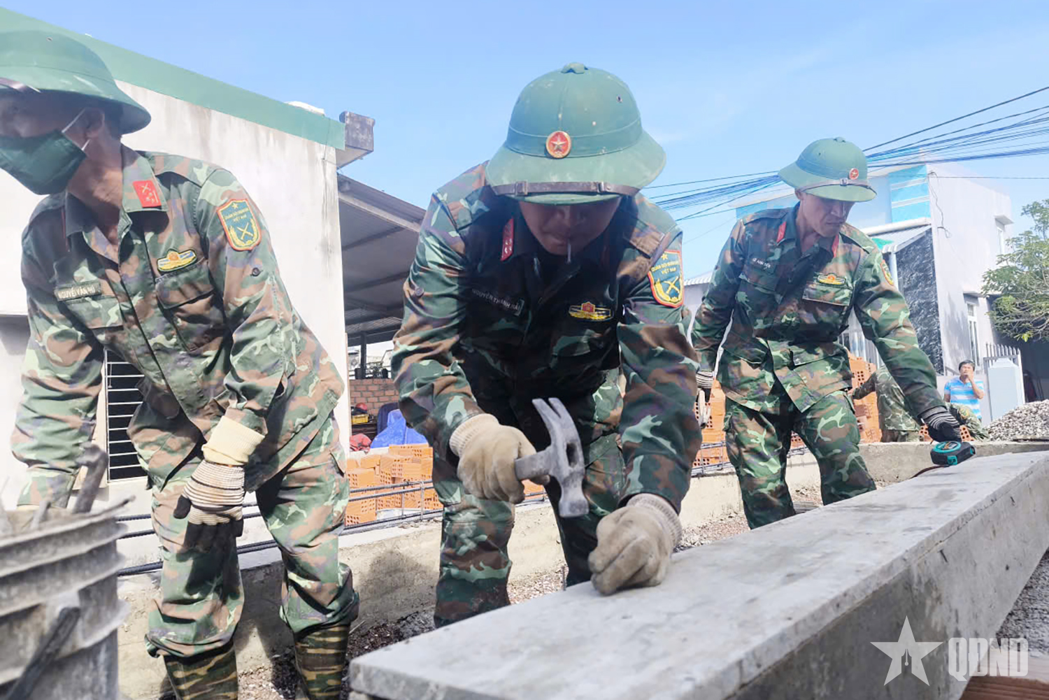 Các chiến sĩ không quản nắng, mưa, giờ nghỉ, ngày nghỉ làm nhà ở giúp người dân.