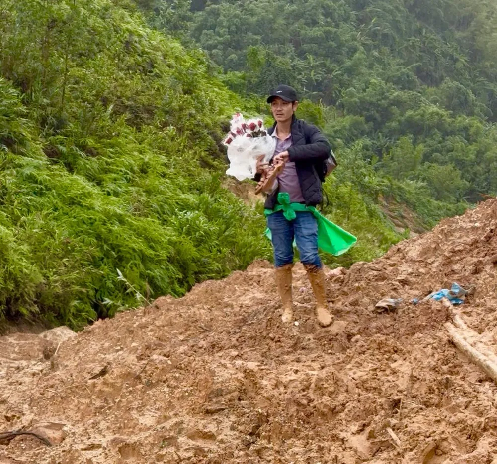 Trên trang cá nhân hơn 16.000 lượt theo dõi của mình, thầy Vỹ đăng tải hình ảnh cùng loạt video ngắn bản thân ôm những đóa hoa hồng lội qua con dốc ngắn cùng bùn lầy vùng núi cao của Quảng Nam (cũ) đã nhanh chóng thu hút sự quan tâm của đông đảo cộng đồng mạng.