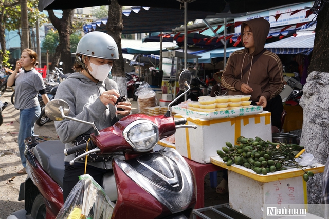 Anh Lê Văn Thông (27 tuổi) vừa tay cân bánh, tay tính tiền cho khách, vừa chia sẻ: "Bình thường em làm shipper, nhưng hôm nay em nghỉ việc để ra đây bán. Dịp Tết nhất mọi người thường ra chợ buôn bán và có rất nhiều người tìm mua đồ cúng. Bán mặt hàng này rất chạy, thu nhập tốt hơn hẳn so với chạy xe".