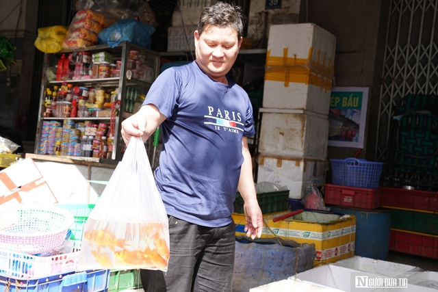 Sáng nay, anh Trung nhập về 40 kg cá chép và ước tính sẽ bán hết trong ngày. "Mặt hàng cá chép này chủ yếu chỉ bán đúng hôm nay thôi. Đến trưa đã bán sắp hết rồi", anh chia sẻ.
