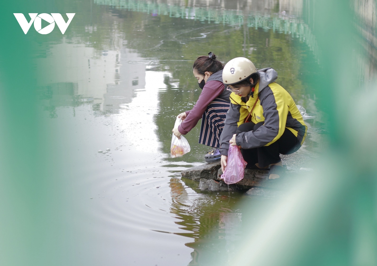 Toàn bộ số cá do người dân mang đến đều được lực lượng chức năng thu gom, đưa đi thả tại sông Hồng. Các xe chuyên dụng được huy động để vận chuyển hàng trăm con cá chép, di chuyển quãng đường khoảng 3km tới điểm thả bên bờ sông.
