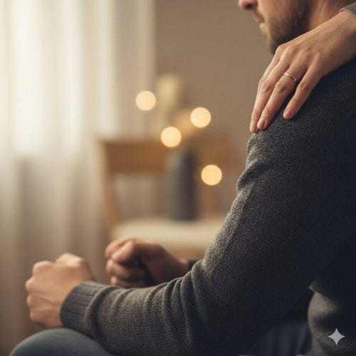 Nam giới nhận thức được tầm quan trọng của việc được trợ giúp nhưng lại bị kìm hãm bởi những chuẩn mực xã hội xem việc bộc lộ cảm xúc là yếu đuối. (Hình minh họa tạo bởi AI)