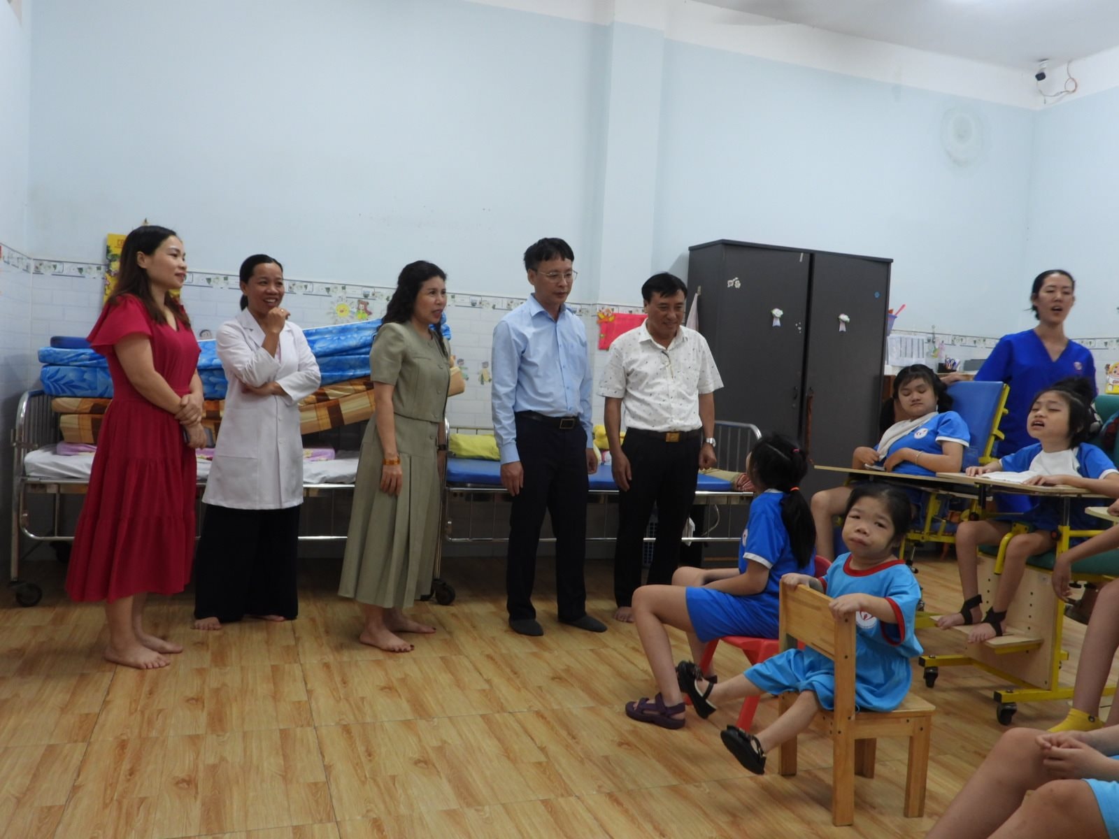 Đại diện Bộ Y tế thăm các em tại Trung tâm Điều dưỡng Phục hồi chức năng - Trợ giúp trẻ em và Hỗ trợ người khuyết tật. Ảnh: Chu Phương