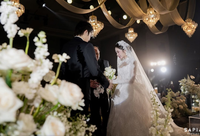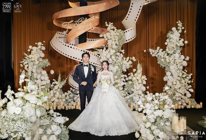 Sau đó, tại tiệc cưới chính thức, Ngọc Huyền xuất hiện rạng rỡ trong chiếc váy cưới lộng lẫy, toát lên vẻ thanh lịch và ngọt ngào như công chúa giữa không gian tràn ngập hoa tươi. Cặp đôi nhận “mưa lời khen” từ khán giả bởi độ đẹp đôi, được ví như “gấp đôi visual” khi cả hai đều sở hữu ngoại hình nổi bật và phong thái cuốn hút.