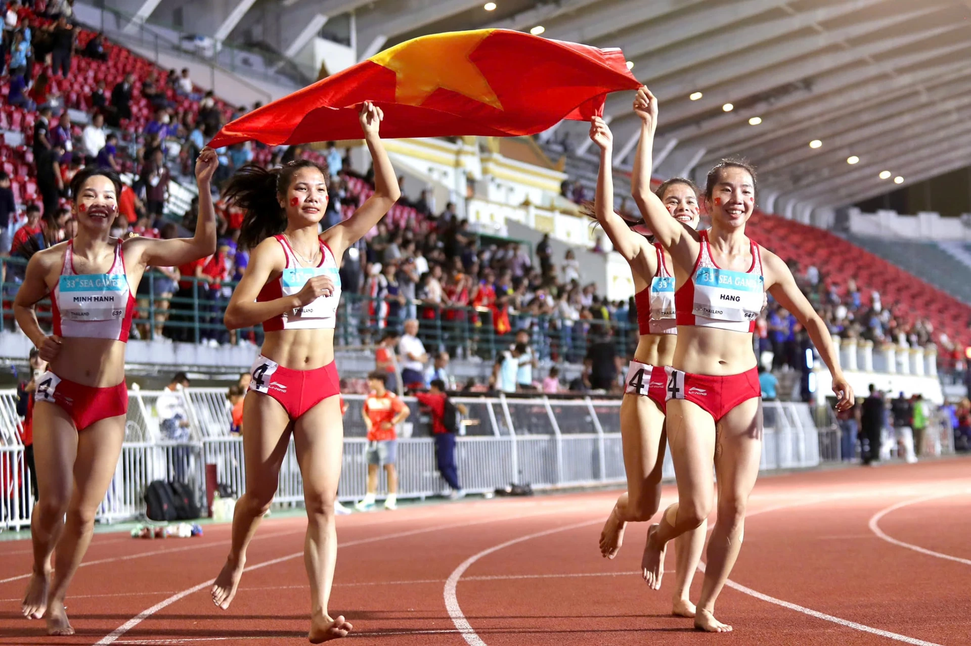 Đội hình tiếp sức 4x400m nữ của điền kinh Việt Nam giành huy chương vàng. Nguồn: TTVN