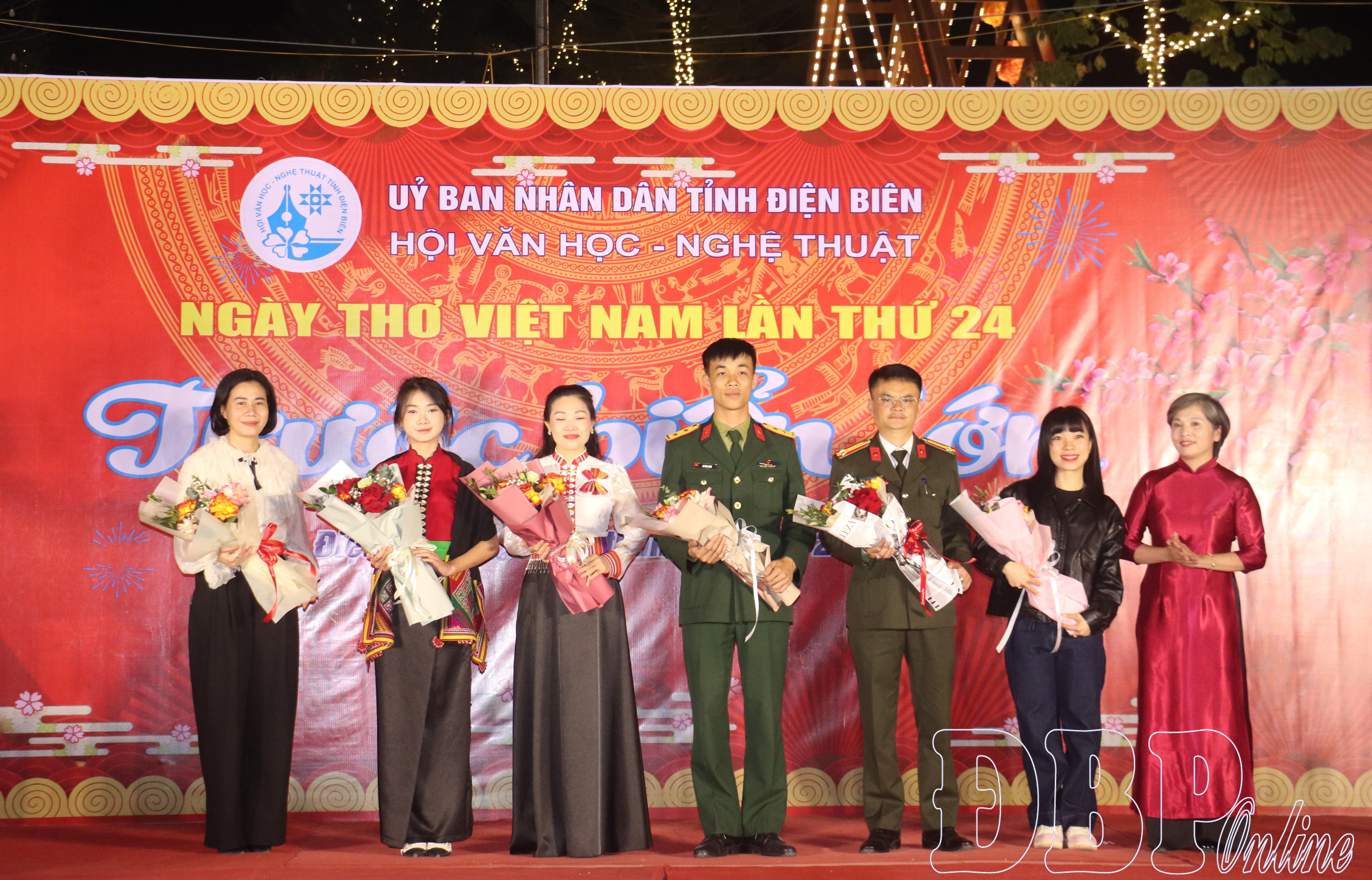 Tại chương trình, Ban Tổ chức đã giới thiệu các tác giả, tác phẩm tiêu biểu qua hình thức như: Trình diễn, ngâm thơ, qua đó đã tạo không gian giao lưu giàu cảm xúc giữa các văn nghệ sĩ và đông đảo công chúng. Những vần thơ ca ngợi Đảng quang vinh, Bác Hồ vĩ đại; ca ngợi quê hương, đất nước vươn mình phát triển và phản ánh nhịp sống đổi mới và khát vọng phát triển của Điện Biên đã để lại nhiều ấn tượng đẹp. Không gian thư pháp và khu trưng bày ấn phẩm văn học, thơ, văn hóa dân gian; Tạp chí Văn nghệ Điện Biên cùng các tác phẩm ảnh đoạt giải cũng thu hút đông đảo cán bộ, hội viên và nhân dân tham quan, tìm hiểu.