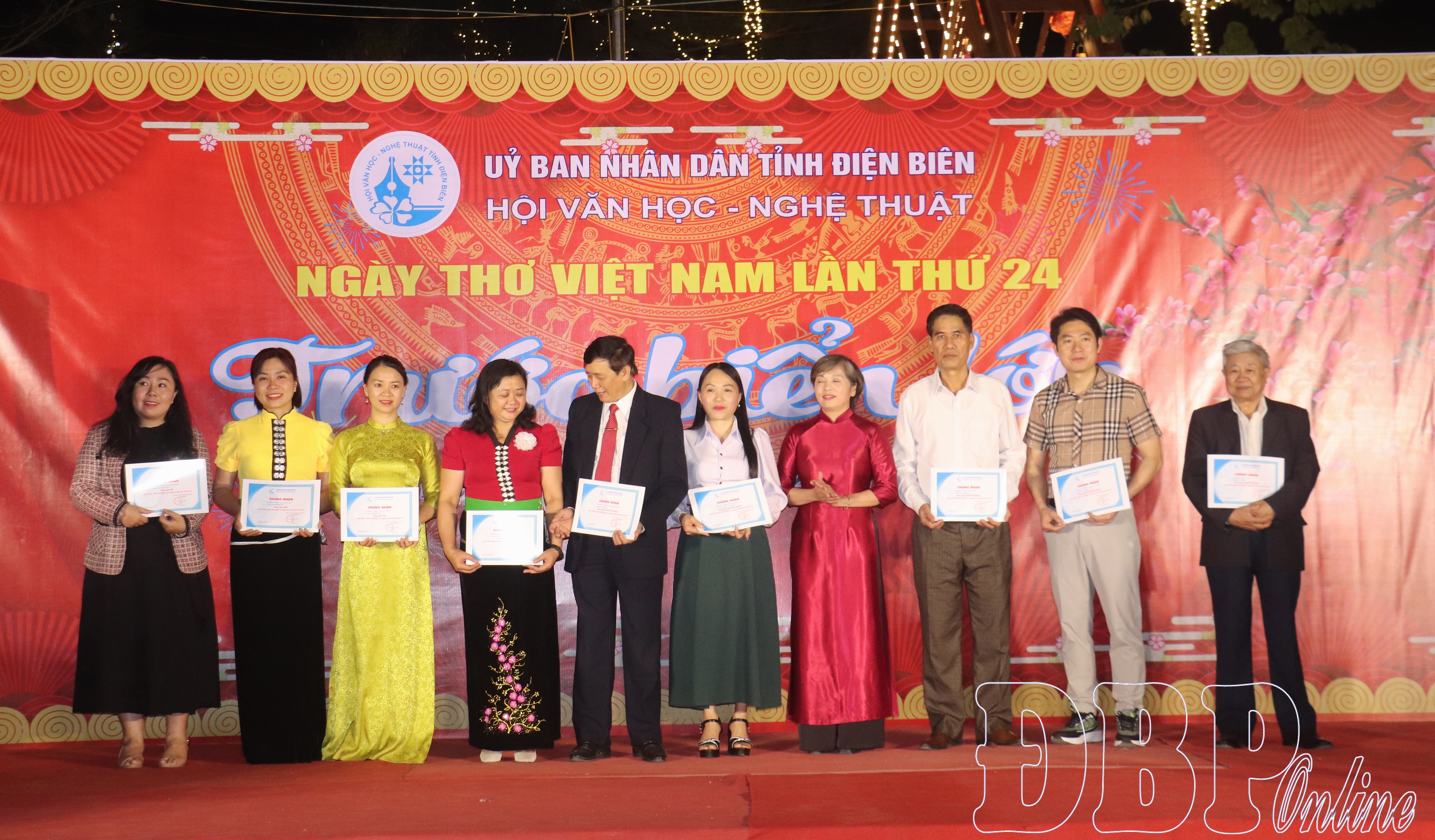 Ban Tổ chức trao giải cho các tác giả đoạt giải Cuộc thi sáng tác thơ “Xuân Điện Biên”.