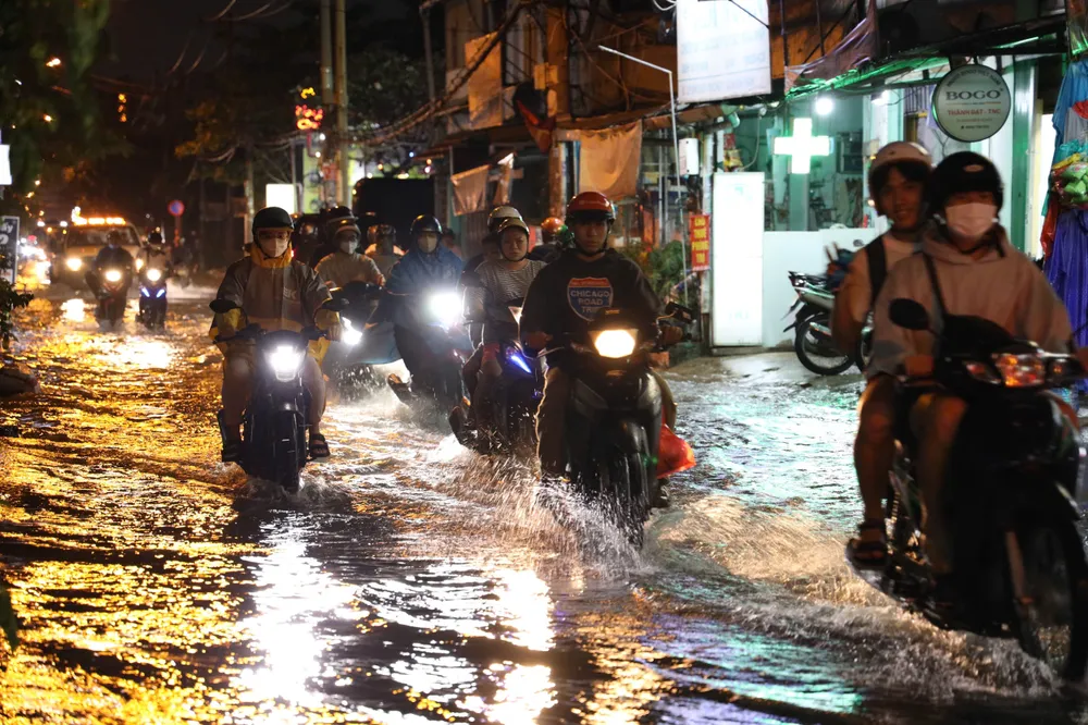 Đỉnh triều lên cao nhất vào các ngày 6 và 7-11 khiến nhiều khu vực ở TP.HCM bì bõm nước.