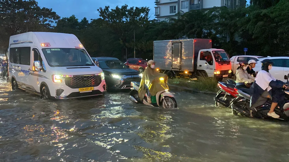 Hôm nay, triều cường vẫn còn ở mức cao, dự báo TP.HCM sẽ còn ngập trong vài ngày tới.