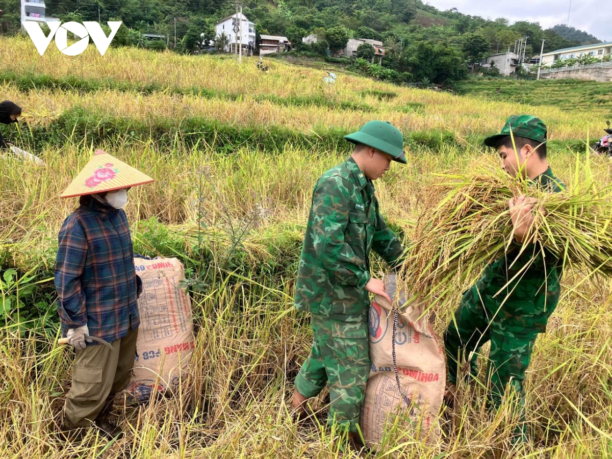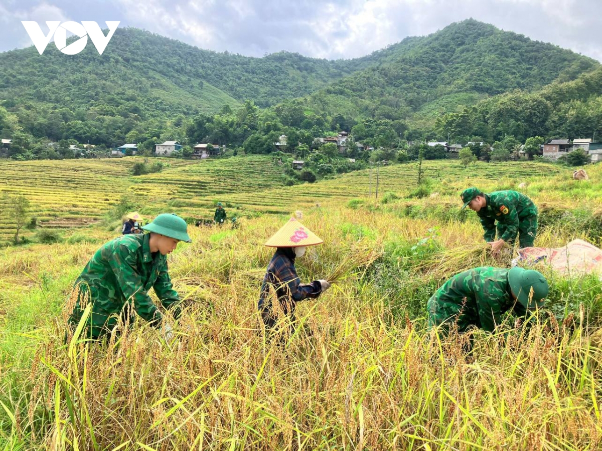 Trên cánh đồng biên cương chiều xuống, những người lính quân hàm xanh vẫn lặng lẽ cùng bà con gom những bó lúa cuối cùng. Ánh nắng cuối ngày phản chiếu lên sắc áo xanh biên phòng, hòa cùng màu vàng của lúa chín, tạo nên bức tranh đẹp đẽ, yên bình nơi phên dậu Tổ quốc - nơi mà tình quân dân mãi xanh như những triền núi biên cương.
