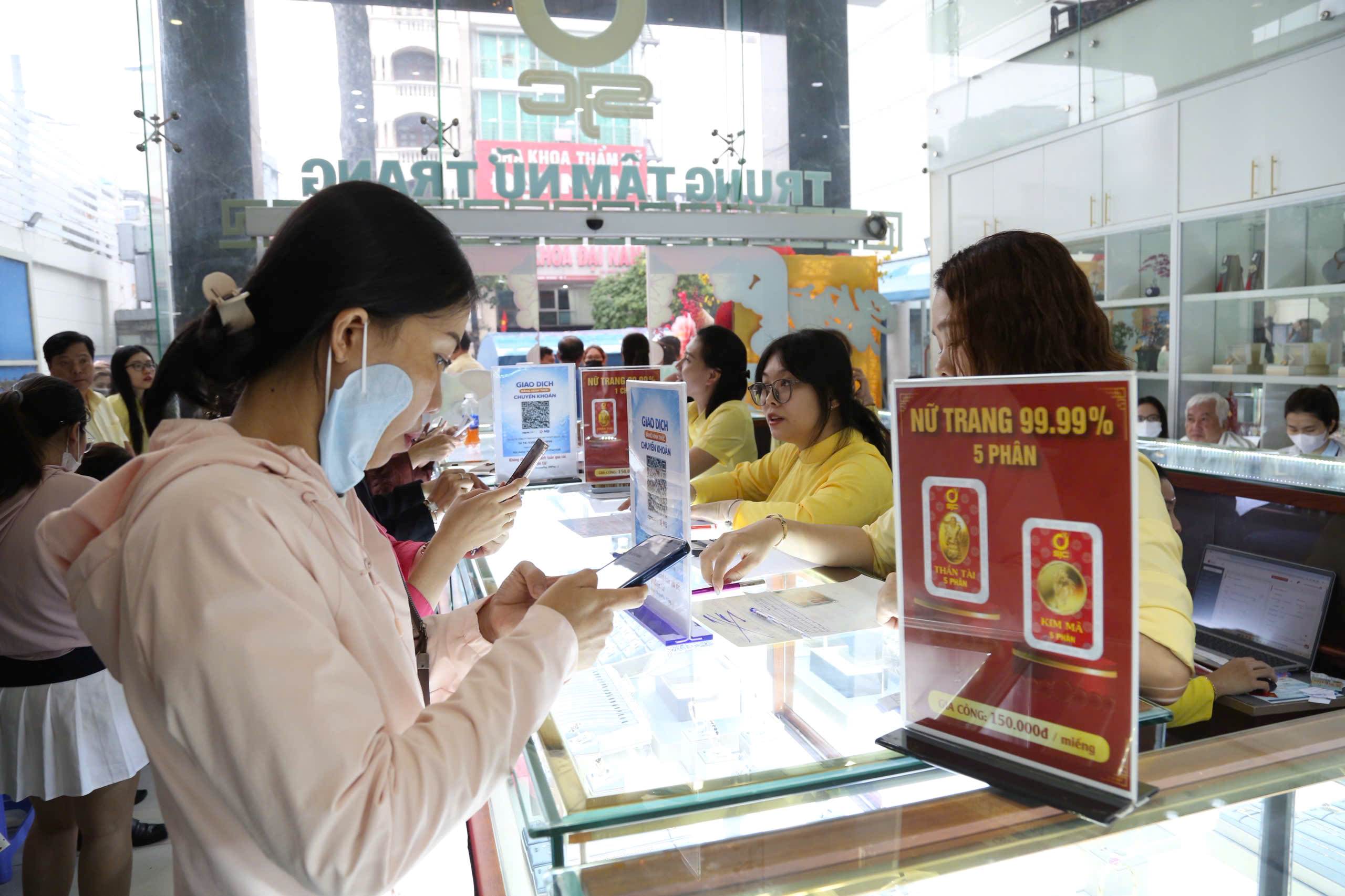 Tại Tiệm vàng Kim Dung (chợ Hòa Bình, quận 5), dòng người cũng đổ về khá đông. Chủ cơ sở cho biết lượng khách mua vàng ngày vía Thần Tài năm nay tăng so với trước.
