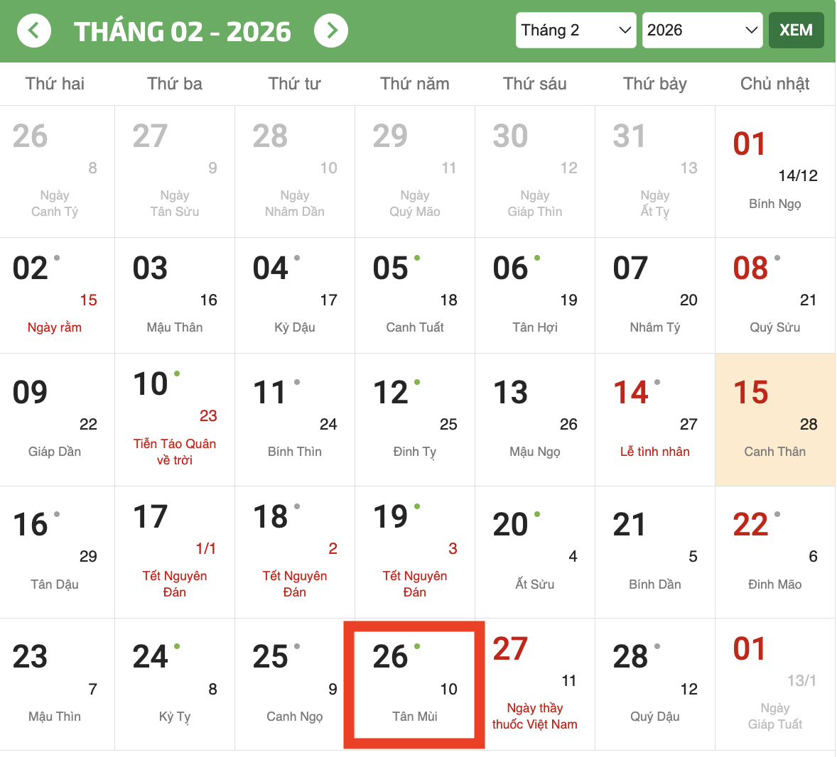 Năm Bính Ngọ 2026, ngày vía thần Tài (mùng 10 tháng Giêng Âm lịch) rơi vào thứ Năm, tức ngày 26/2/2026 Dương lịch.