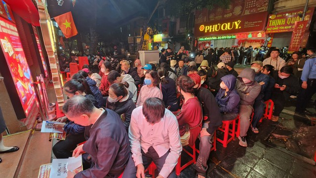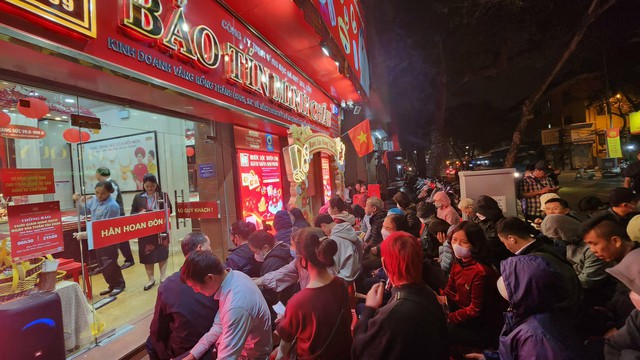 Người dân xếp hàng chờ mua vàng. Ảnh: PV.