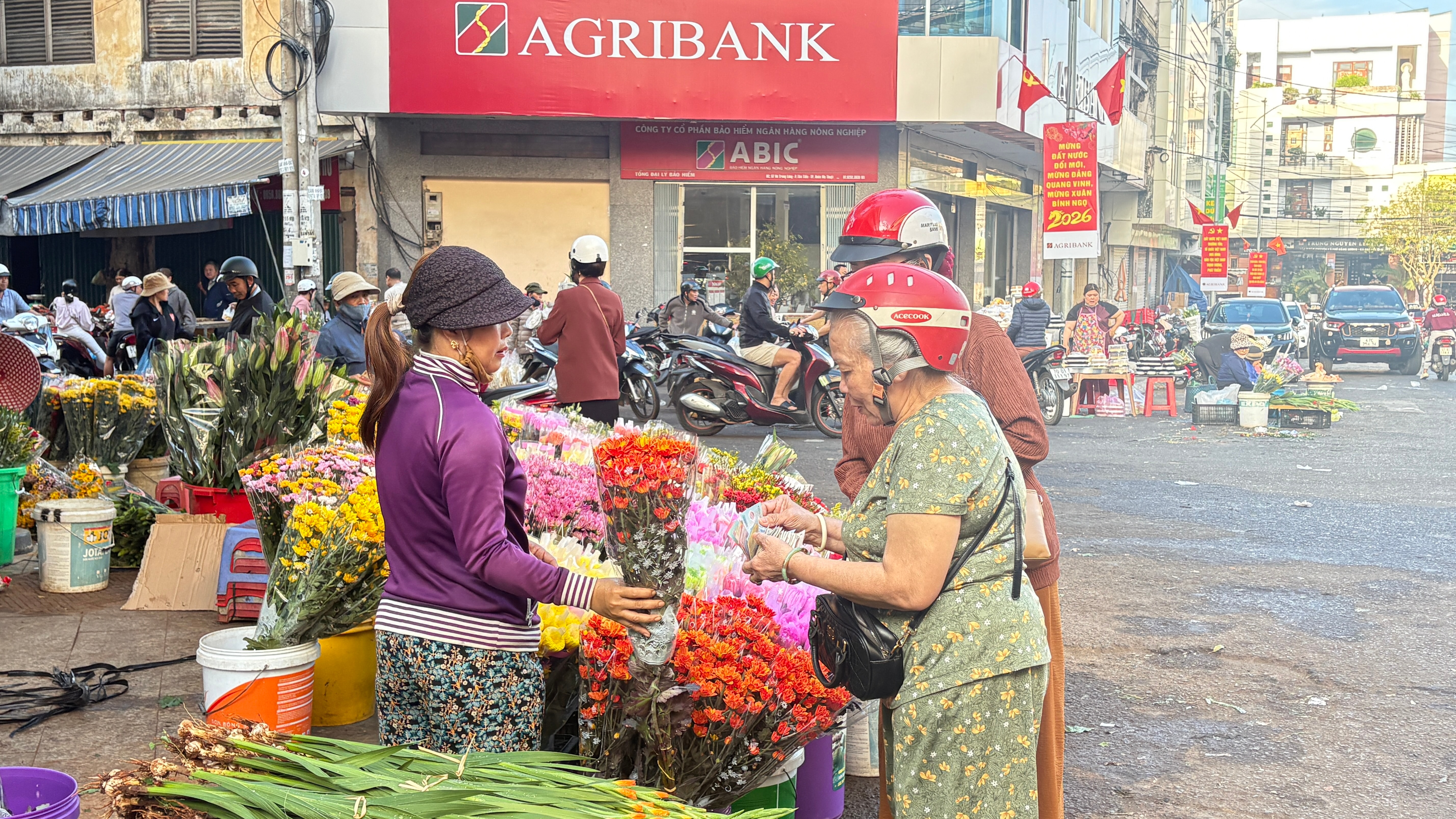 Không khí mua bán nhộn nhịp trước khu vực chợ Buôn Ma Thuột