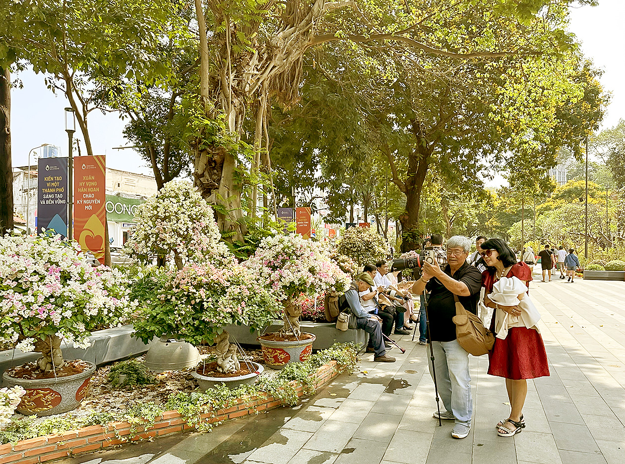 Người dân đến vui chơi, chụp ảnh tại Công viên số 1 Lý Thái Tổ. (ẢNH: THANH HIỀN)