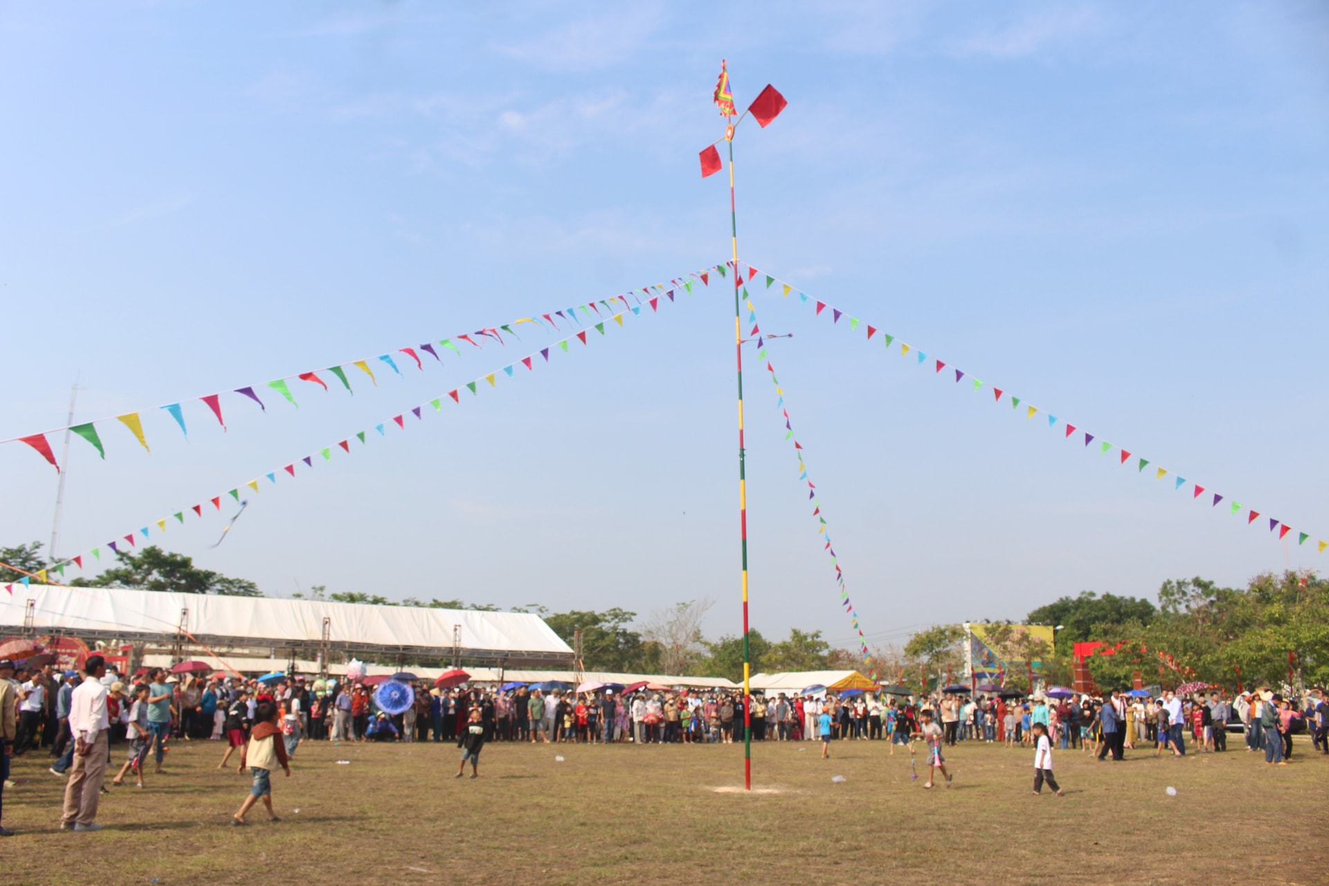 Sôi động nhất vẫn là hội ném còn. Khoảng đất rộng ken đặc người, những quả còn ngũ sắc bay lên rồi hạ xuống, vẽ những đường cong rực rỡ giữa nền trời. Mỗi lần quả còn suýt chạm vào vòng tròn là tiếng reo hò lại vang lên không dứt.