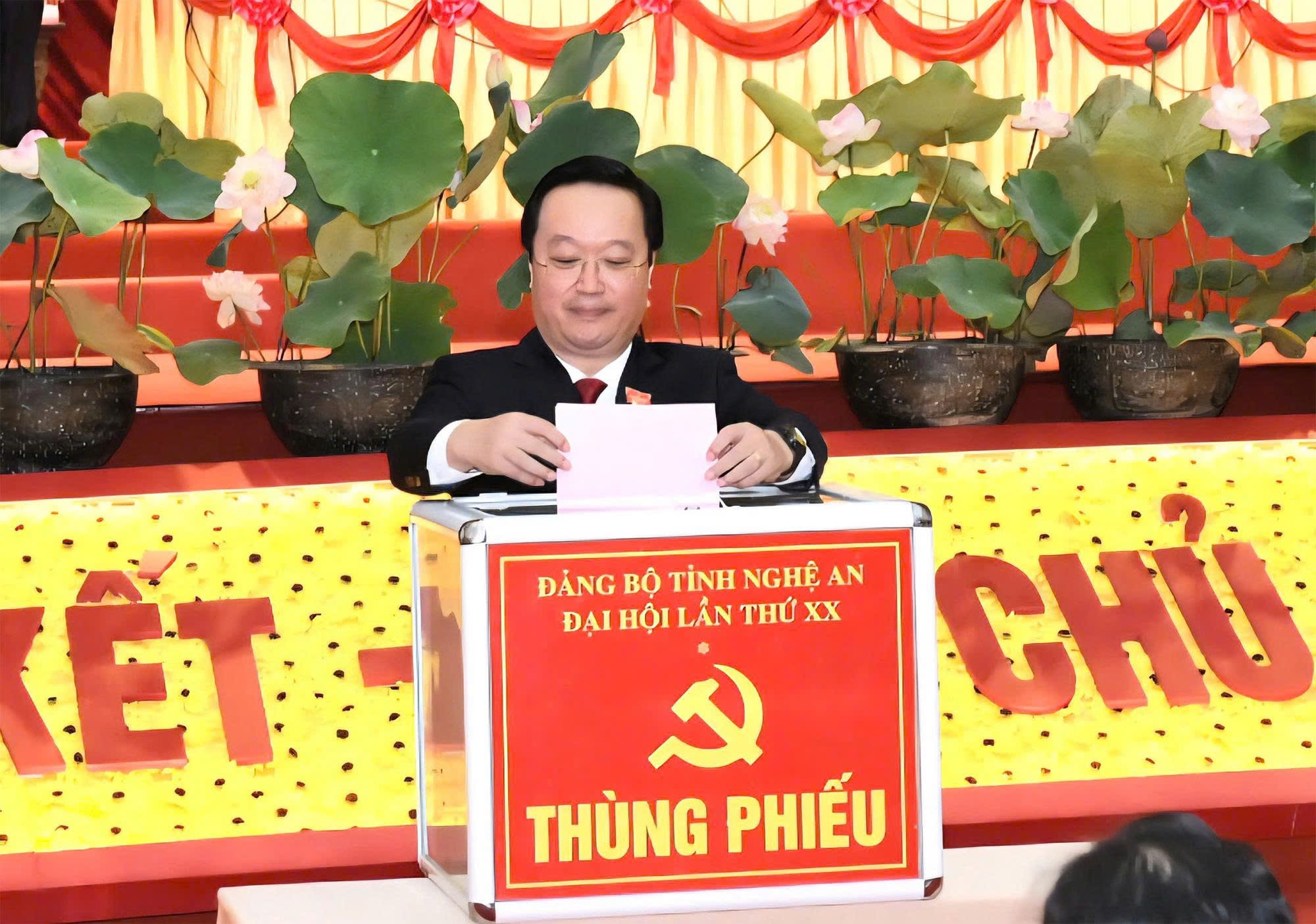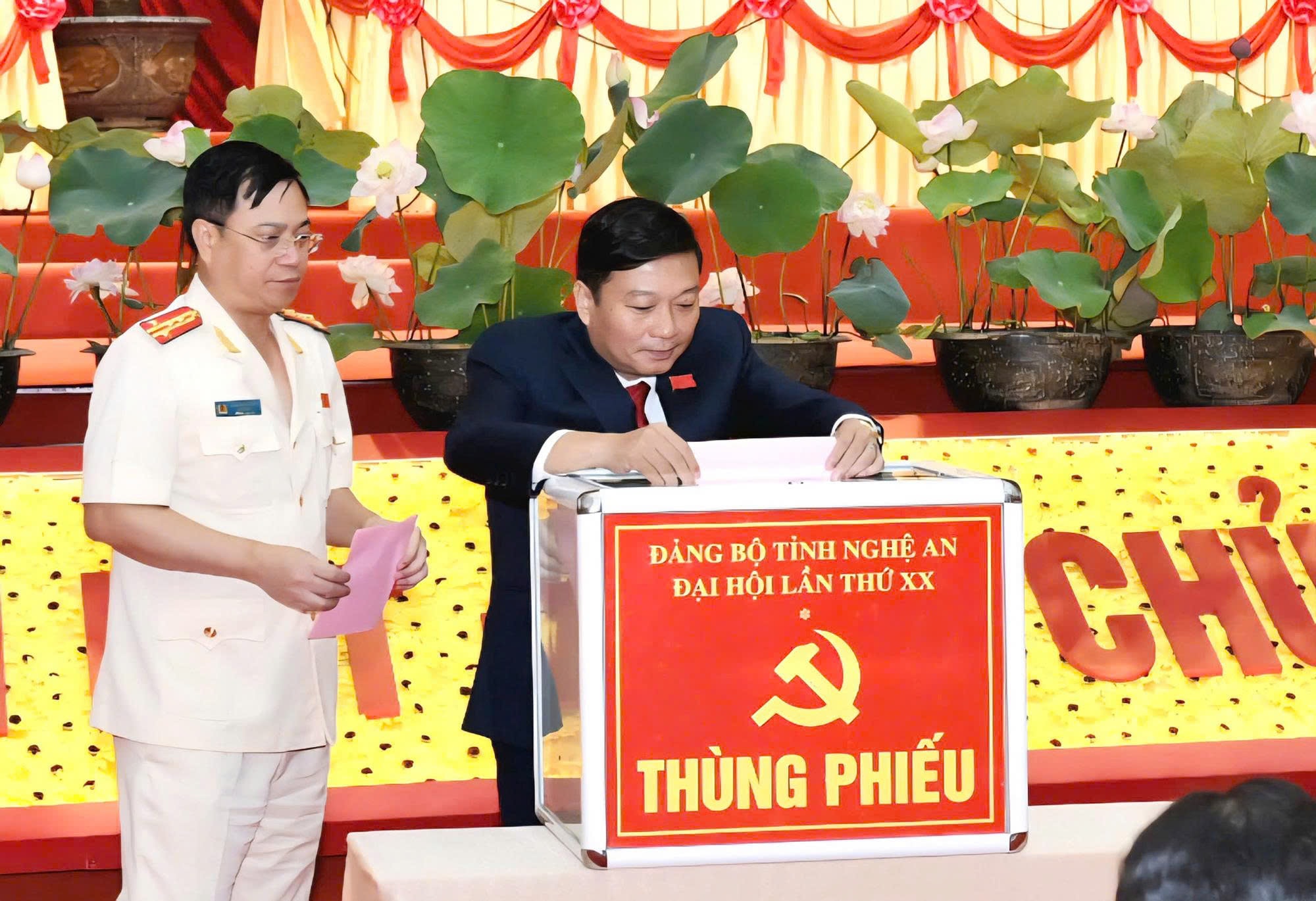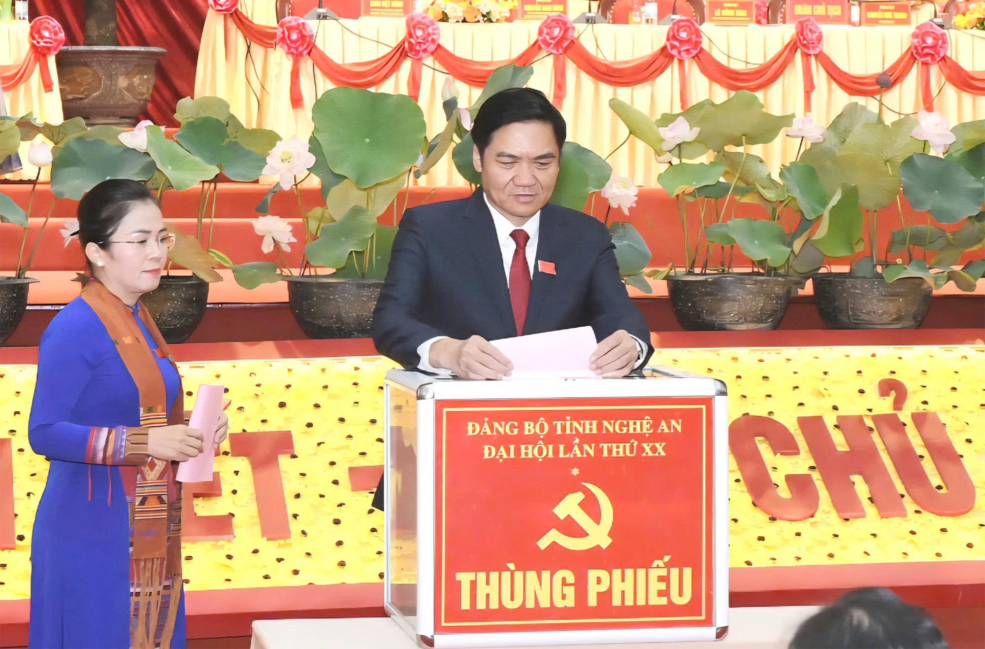 Các đại biểu bỏ phiếu bầu Ban Chấp hành Đảng bộ tỉnh Nghệ An Khóa XX.