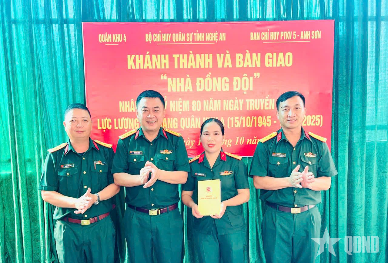 Trước đó, ngày 10-10, Ban Chỉ huy Phòng thủ Khu vực 5 - Anh Sơn đã phối hợp với chính quyền địa phương xã Đại Đồng, tỉnh Nghệ An tổ chức khánh thành và bàn giao “Nhà đồng đội” cho Đại úy QNCN Nguyễn Thị Hòa, nhân viên Hành chính đơn vị.