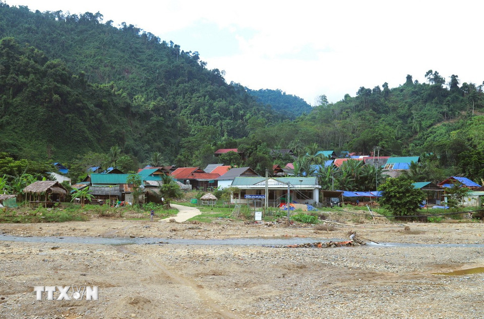 Bản Na Ngân hiện có 153 hộ với 730 nhân khẩu, đều là dân tộc Thái, nằm dưới chân núi Pù Hiêng, tách biệt thành 2 cụm dân cư bởi thượng nguồn suối Nậm Ngân. (Ảnh: Xuân Tiến/TTXVN)