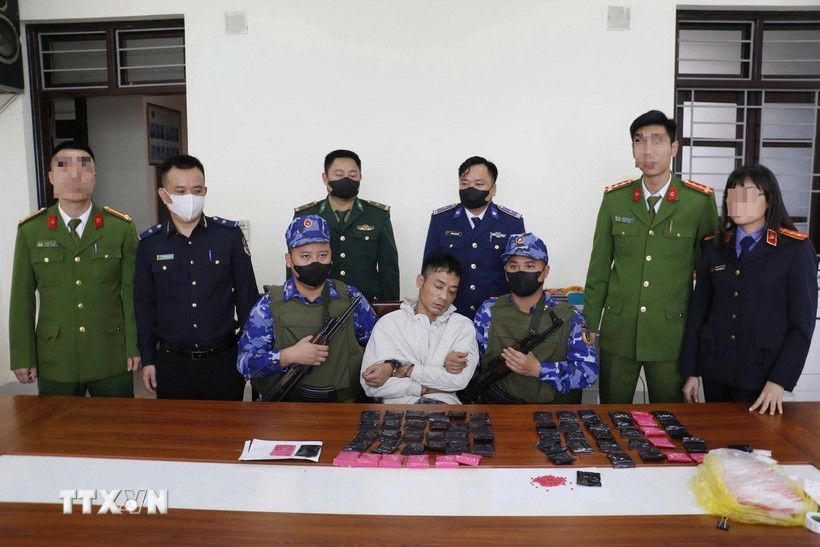 Đối tượng Nguyễn Tiến Dũng và tang vật vụ án. (Ảnh: TTXVN phát)
