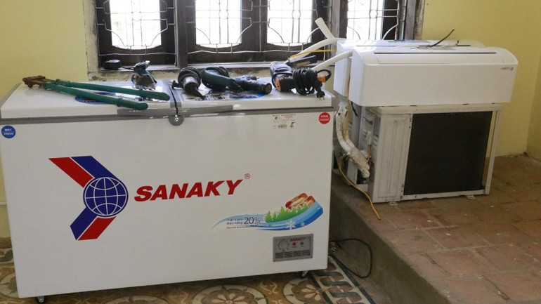 Tang vật thu giữ, gồm: 2 thuyền, 2 bộ điều hòa, 2 tủ lạnh, 1 máy gặt cùng nhiều tài sản khác. Tổng giá trị hơn 100 triệu đồng.