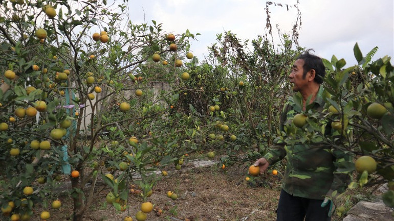 “Có khách quen đặt 500 quả chờ đến ngày 20 tháng Chạp sẽ hái, nhưng cam vẫn cứ rụng nhiều nên không biết có đủ để giao cho họ hay không”, ông Hạnh buồn bã chia sẻ.