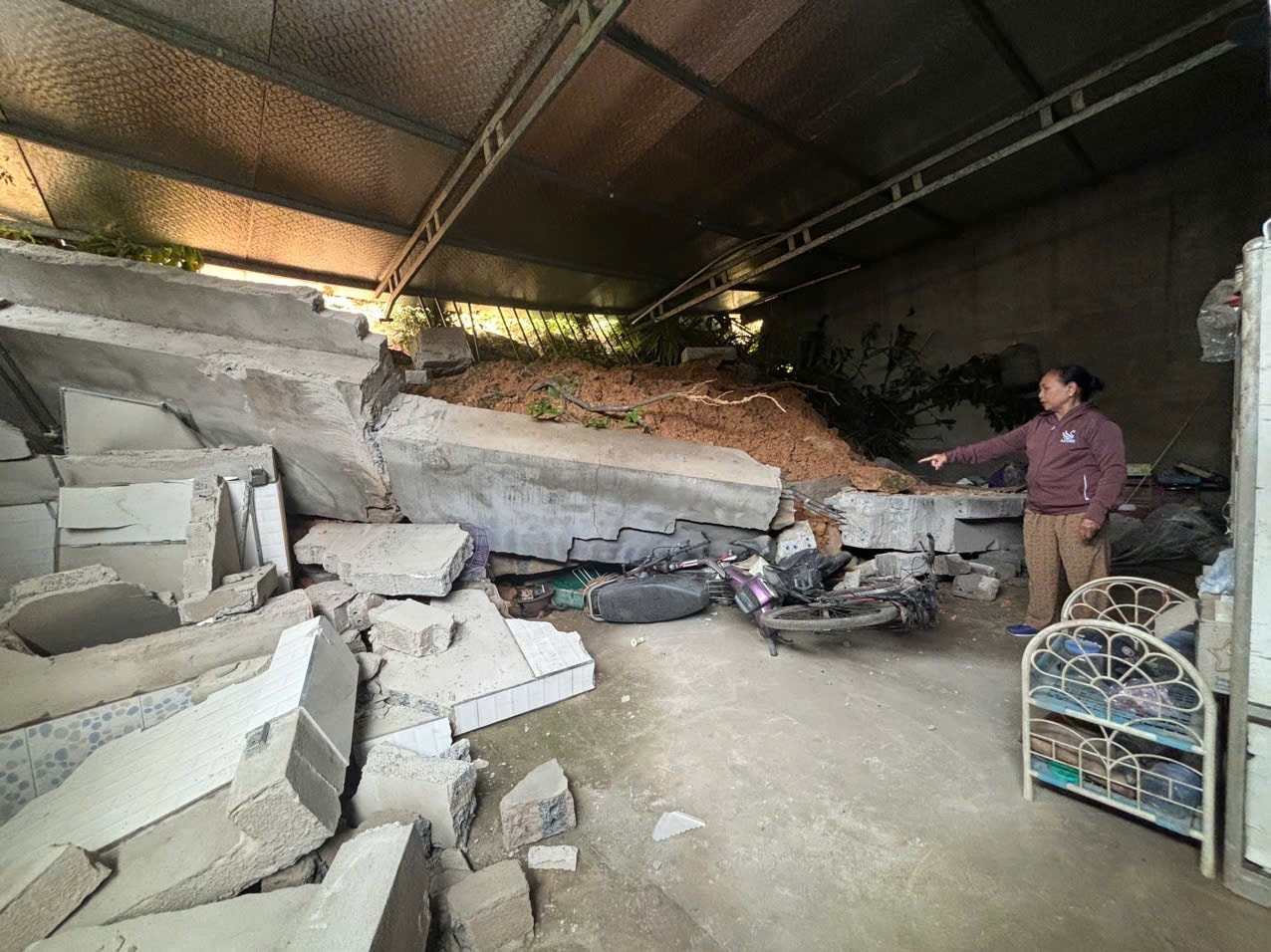 Nhiều ta luy, bờ rào, mái tôn phía sau của người dân bị sập đổ.