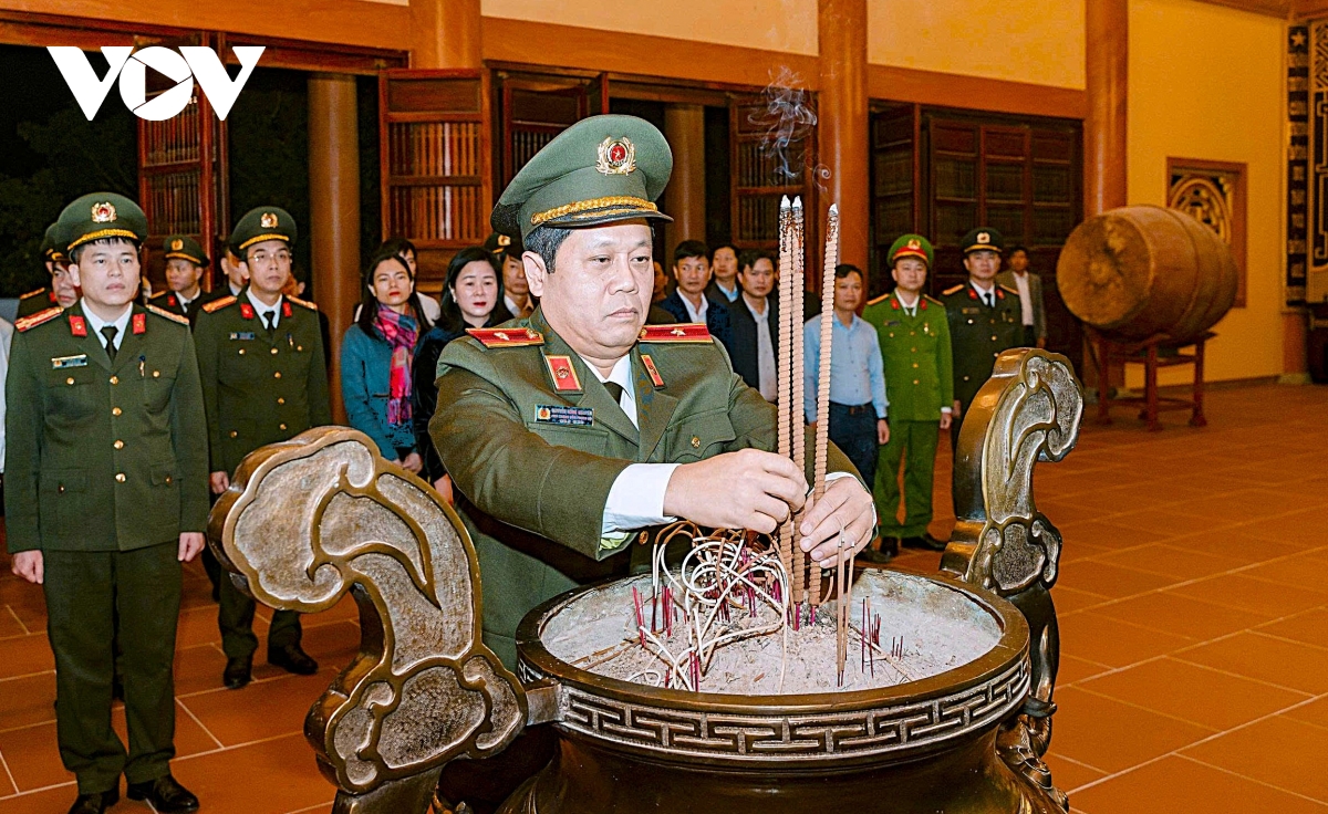 Thiếu tướng Nguyễn Hồng Nguyên, Phó Chánh Văn phòng Bộ Công an, Phó Trưởng Ban thường trực Ban Chỉ huy phòng thủ dân sự Bộ Công an dâng hoa, dâng hương tưởng nhớ công lao to lớn của các anh hùng, liệt sỹ. (Ảnh: Bá Thăng)