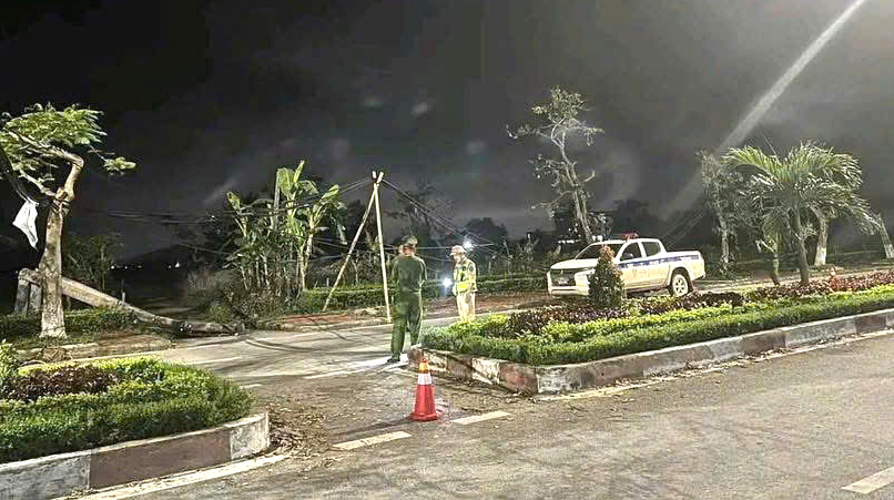 Dây cáp sà xuống thấp, dây cáp bị cắt bỏ nhưng không được thu gom treo lơ lửng giữa đường.