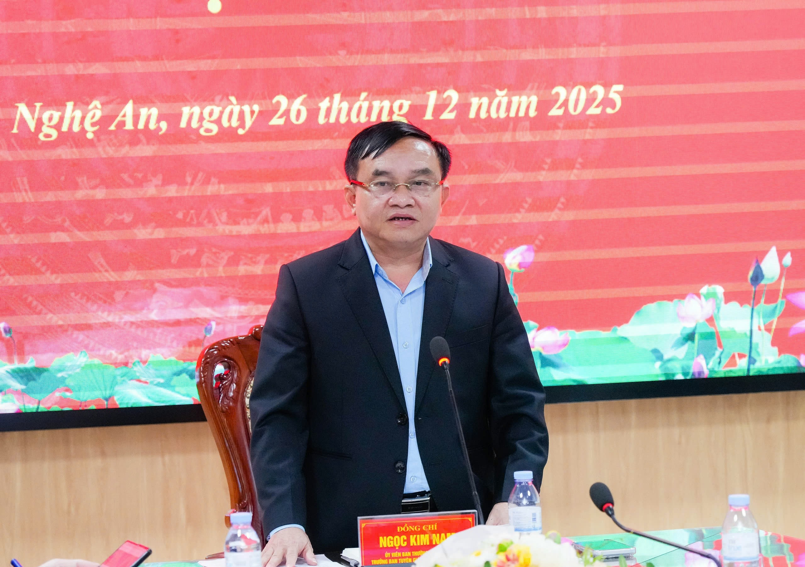 Trưởng Ban Tuyên giáo và Dân vận Tỉnh ủy tỉnh Nghệ An Ngọc Kim Nam phát biểu tại cuộc họp.