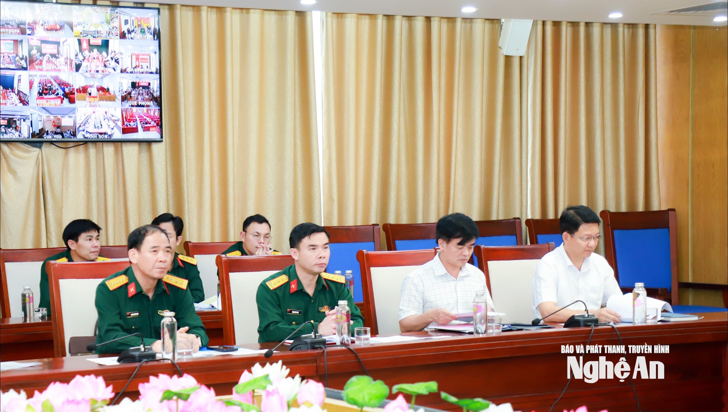 Tại điểm cầu UBND tỉnh Nghệ An các đồng chí: Thiếu tướng Lê Hồng Nhân - Phó Tư lệnh, Tham mưu trưởng Quân khu 4; Nguyễn Văn Đệ - Ủy viên Ban Thường vụ Tỉnh ủy, Phó Chủ tịch UBND tỉnh đồng chủ trì.