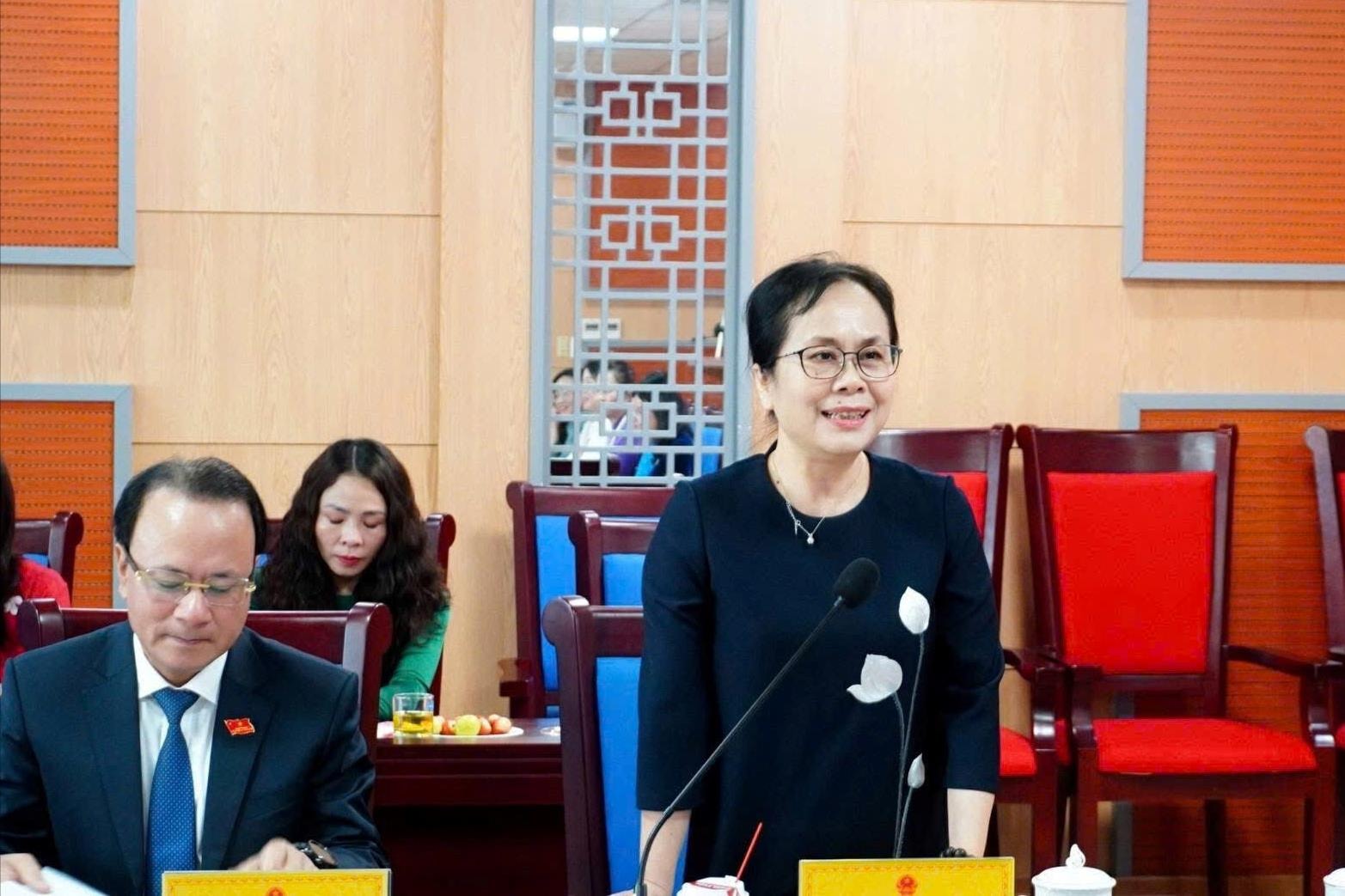 Phó Bí thư Tỉnh ủy, Chủ tịch Ủy ban MTTQ Việt Nam tỉnh, Trưởng Đoàn ĐBQH tỉnh Nghệ An Võ Thị Minh Sinh phát biểu.