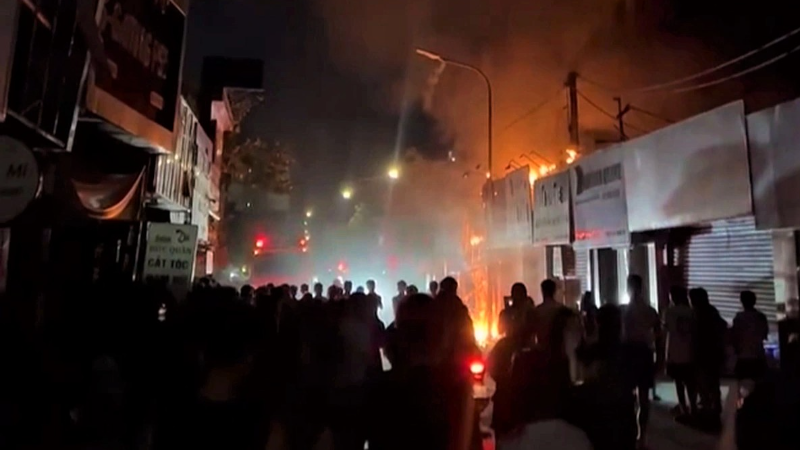 Vụ hỏa hoạn xảy ra ở khu vực tập trung nhiều cửa hàng bán quần áo. (Ảnh: NGA SÂM)