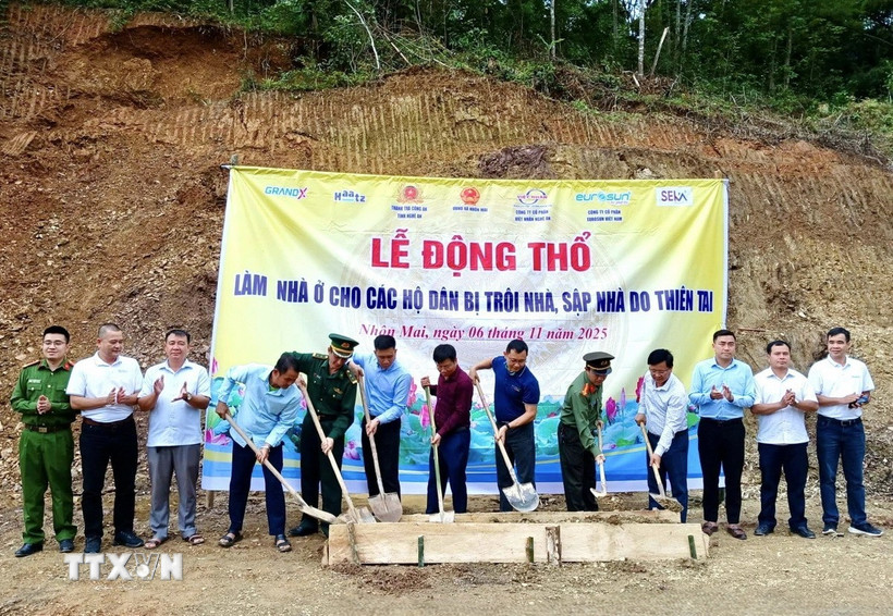 Ngày 7/11, ông Mạc Văn Nguyên, Bí thư Đảng ủy xã Nhôn Mai, tỉnh Nghệ An cho biết cấp ủy, chính quyền địa phương đã tổ chức lễ động thổ khởi công xây dựng nhà ở cho 15 hộ dân ở bản Huổi Tố 2 có nhà bị sập, cuốn trôi hoàn toàn do đợt lũ ống, lũ quét xảy ra trên địa bàn vào cuối tháng 7/2025.