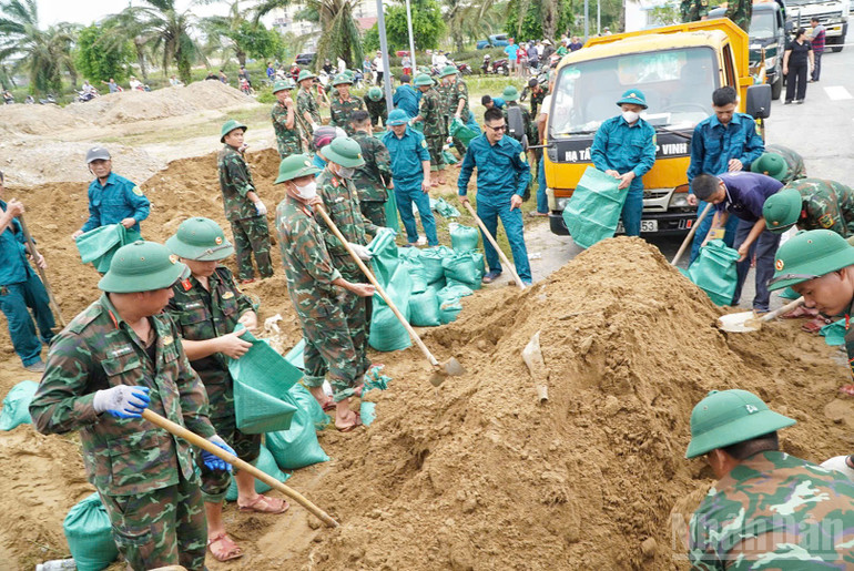 Bên cạnh đó, để ngăn nước lũ tràn vào các phường thuộc thành phố Vinh cũ, hàng trăm khối đá hộc, đất, cát được vận chuyển cấp tốc từ các khu vực lân cận.