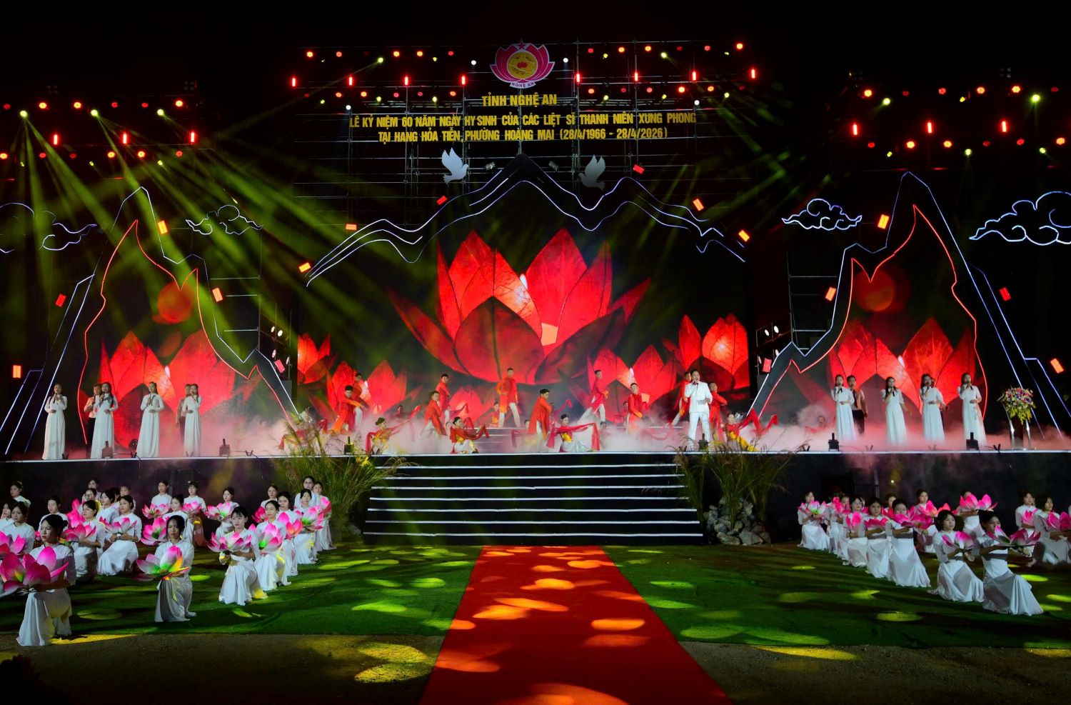 Chương trình sử thi nghệ thuật “Lửa thiêng trong đá” tại lễ kỷ niệm được dàn dựng công phu, giàu cảm xúc, như một bản trường ca bằng âm thanh, ánh sáng và hình ảnh, tái hiện sống động những năm tháng chiến tranh ác liệt tại hang Hỏa Tiễn. Chương trình khắc họa đậm nét tinh thần kiên cường, ý chí sắt đá và sự hy sinh anh dũng của lực lượng thanh niên xung phong.