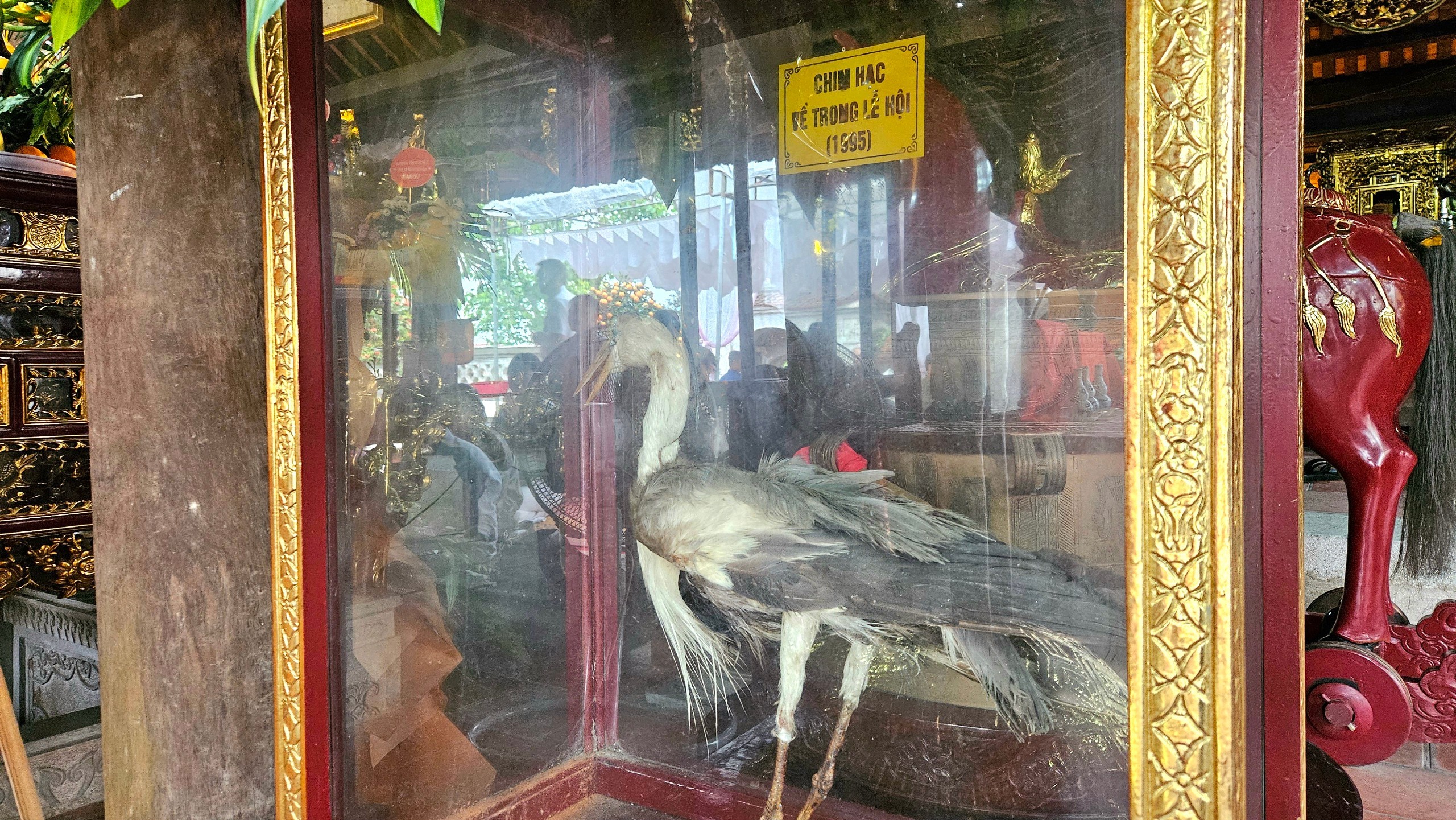 Tiêu bản chim hạc trong tủ kính tại đền Cuông. Ảnh: Nguyễn Diệu
