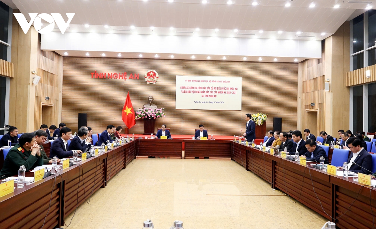 Đoàn giám sát, kiểm tra công tác bầu cử Đại biểu Quốc hội khóa XVI và Đại biểu HĐND các cấp nhiệm kỳ 2026-2031 do Thượng tướng Trần Quang Phương - Ủy viên Trung ương Đảng, Phó Chủ tịch Quốc hội, Ủy viên Hội đồng bầu cử Quốc gia, Trưởng Tiểu ban Bảo đảm an ninh, trật tự và an toàn xã hội làm Trưởng đoàn đã làm việc với Ủy ban bầu cử tỉnh Nghệ An
