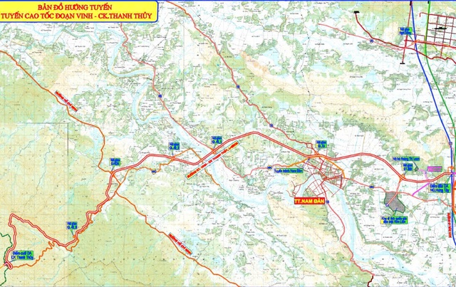 Bản đồ hướng tuyến cao tốc Vinh - Thanh Thủy.