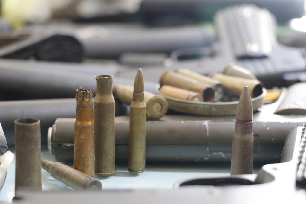 Bước đầu, cơ quan công an thu giữ 64 khẩu súng quân dụng, 28.720 viên đạn thuộc danh mục vũ khí quân dụng, 24 khẩu súng là công cụ hỗ trợ... (Ảnh C.A)