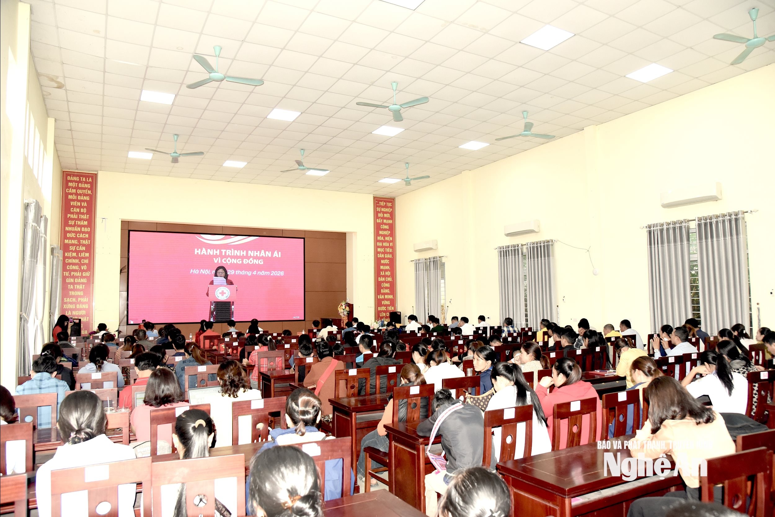 Lễ phát động Tháng Nhân đạo cấp Quốc gia được tổ chức tại điểm cầu chính Hà Nội, kết nối với các điểm cầu Nghệ An, An Giang, Tuyên Quang.