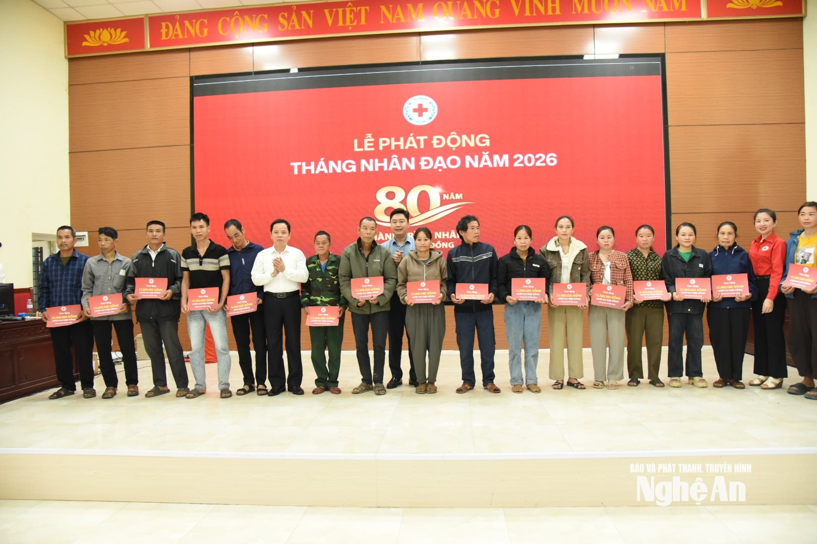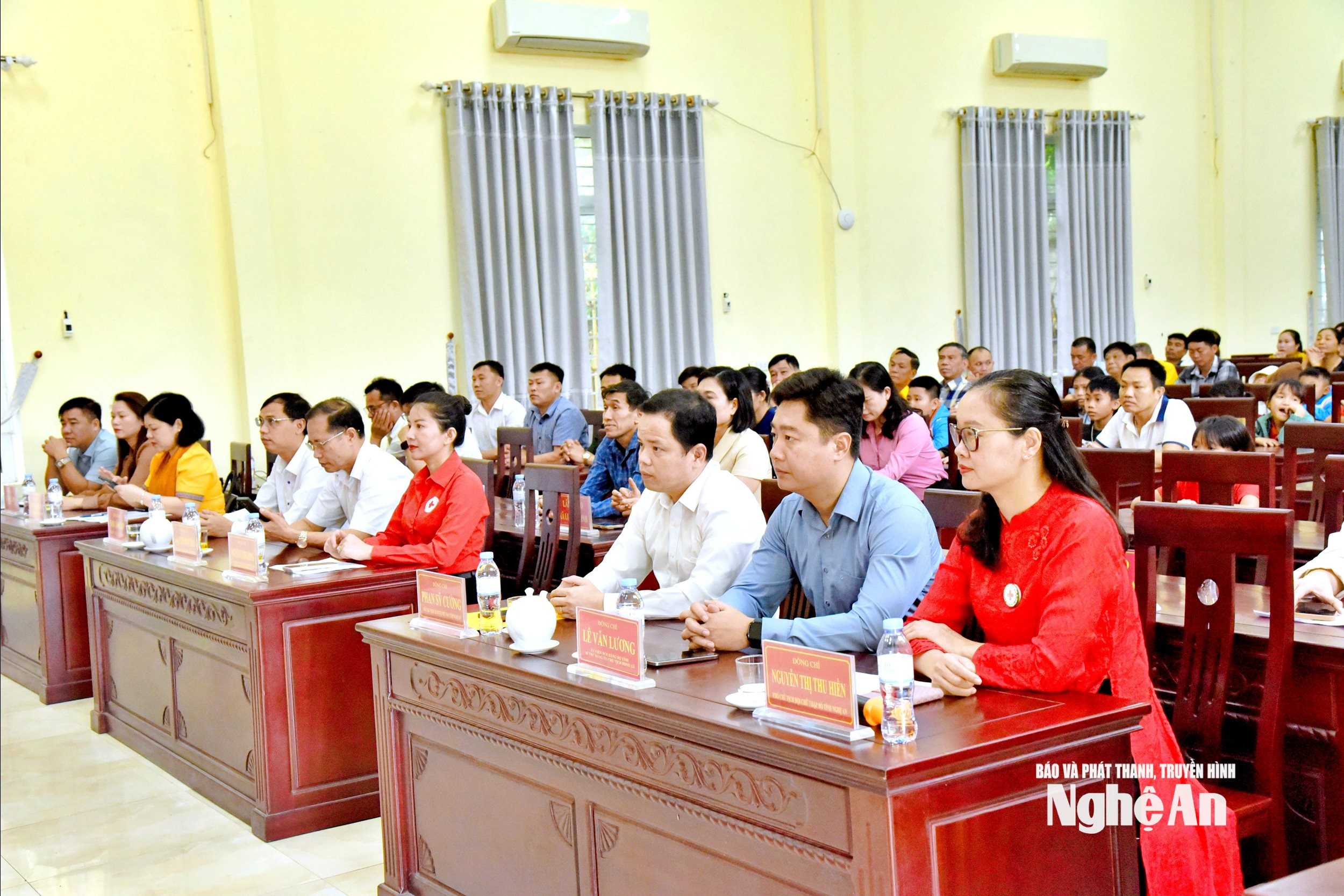 Tại điểm cầu Nghệ An có các đồng chí: Lê Văn Lương – Ủy viên Ban chấp hành Đảng bộ tỉnh, Bí thư Đảng ủy xã Tương Dương; Phan Sỹ Cường - Phó Chủ tịch Ủy ban MTTQ Việt Nam tỉnh; Nguyễn Lương Hồng - Ủy viên BCH Trung ương Hội Chữ thập đỏ Việt Nam, Chủ tịch Hội Chữ thập đỏ tỉnh, cùng đại diện các sở, ngành, đơn vị và đông đảo người dân.