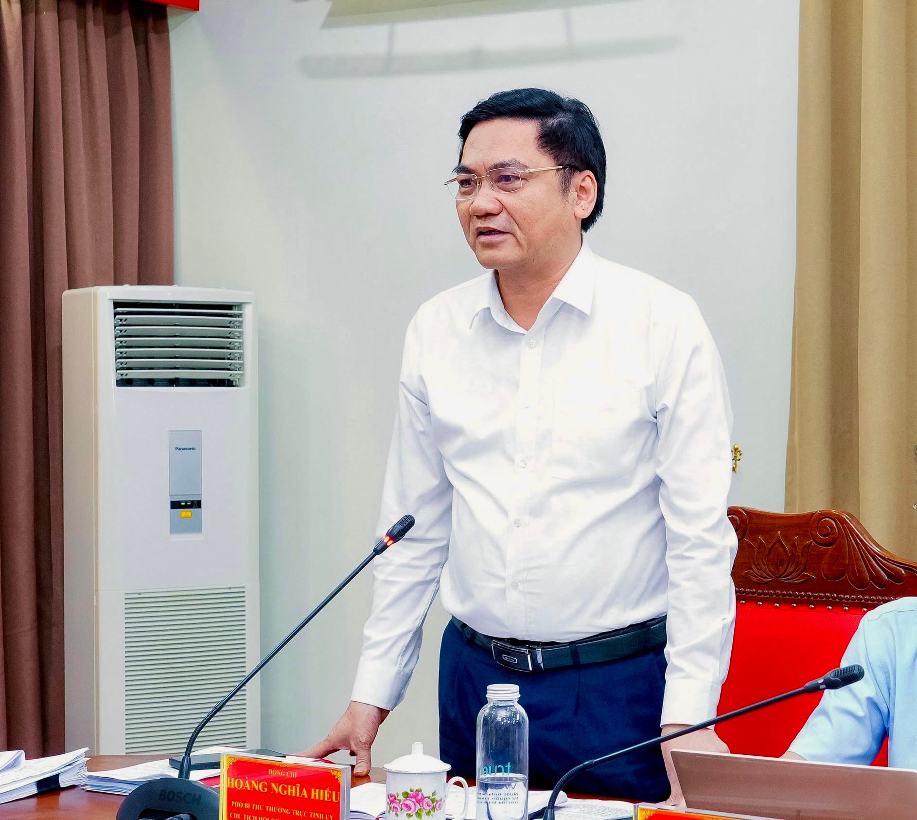 Phó Bí thư Thường trực Tỉnh ủy, Chủ tịch HĐND tỉnh Hoàng Nghĩa Hiếu phát biểu