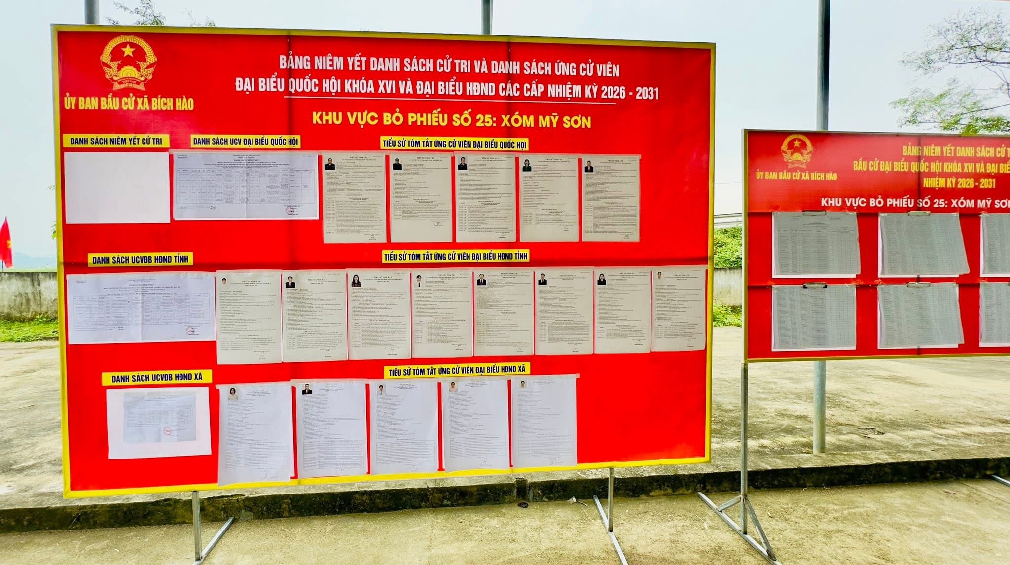 Bảng niêm yết danh sách tại khu vực bỏ phiếu số 25 xóm Mỹ Sơn, xã Bích Hào